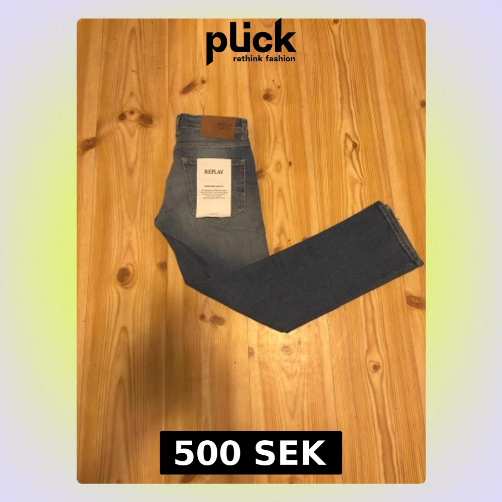Säljer ett par klassiska nya blå jeans från Replay med raka ben och snygg tvätt. Jeansen har fem fickor, normal midja och subtila slitningar framtill för en cool look. Perfekta för dig som gillar en tidlös stil med lite edge.