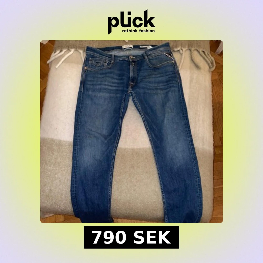 Snygga blå jeans från Replay, modell Rocco med klassisk femficksdesign och bekväm passform. Jeansen har tydliga kontrastsömmar, Replay-logga på bakfickan och patch i skinnimitation vid linningen. Perfekta för dig som gillar en stilren och tidlös look. Waist 33/length32