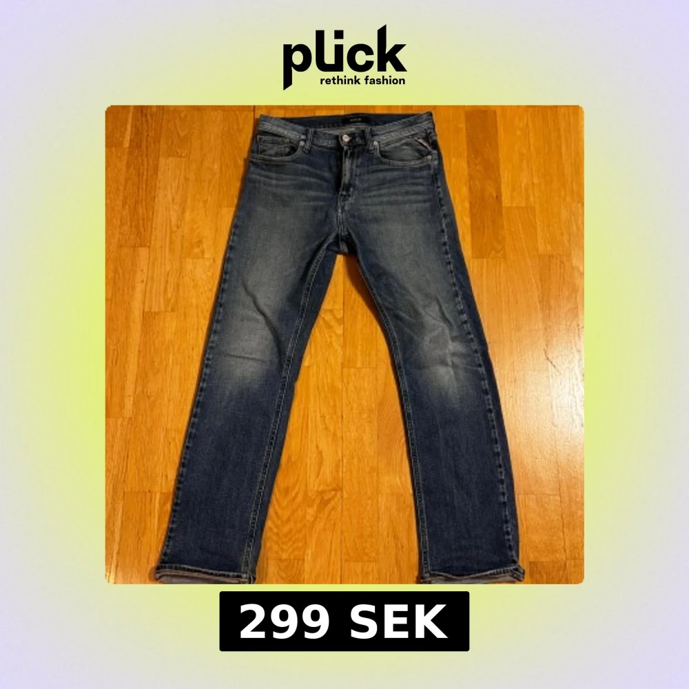 Snygga blå jeans från Replay med klassisk femficksdesign och raka ben. Modellen är Thad och har en lätt tvätt på byxorna. Borde passa dig som är runt 175-180