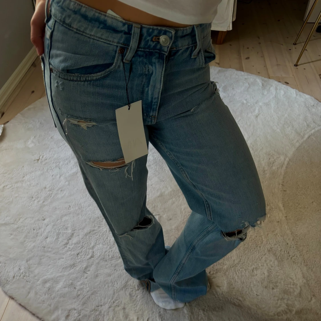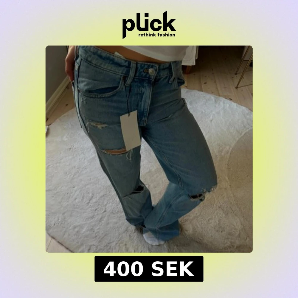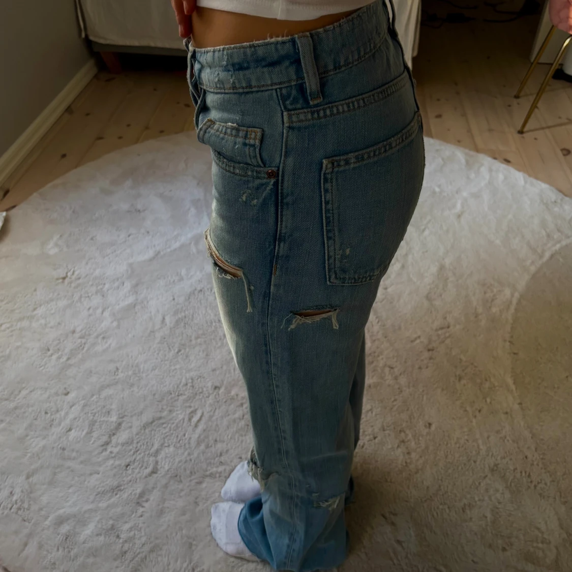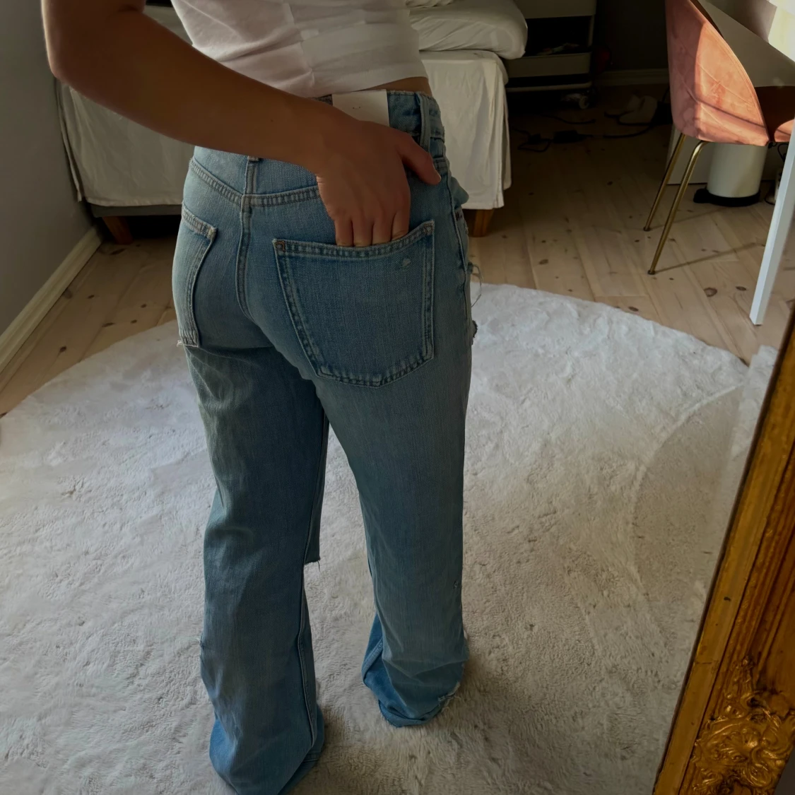 Säljer ett par ljusblå jeans med snygga slitningar. Modellen har medelhög midja, storlek 34. Slutsålda på hemsidan, lappen finns kvar, alltså aldrig använda. Hör gärna av er vid frågor 💓obs köparen står för frakt. Pris går att diskutera.