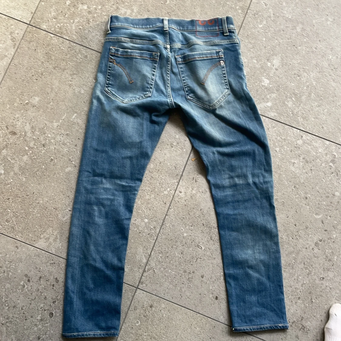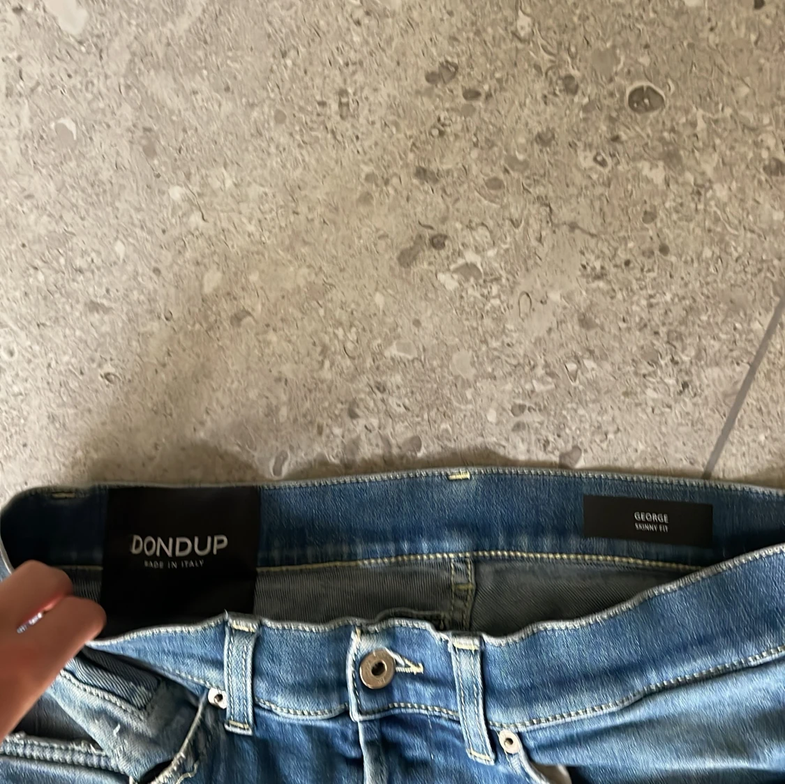 Säljer ett par snygga blå skinny jeans från Dondup, modell George. Jeansen har klassisk femficksdesign, ljusa slitningar och smal passform. Tillverkade i mjuk bomullsdenim med stretch för extra komfort. Perfekta för dig som gillar en modern och tight look.