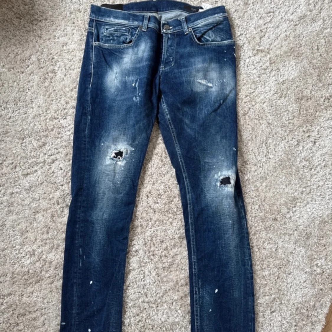 Snygga blå jeans från Dondup med slitningar och hål på knäna för en cool, avslappnad look. Jeansen har klassisk femficksdesign, smal passform och är tillverkade i mjukt denim. Perfekta för dig som gillar streetstyle och italiensk design.