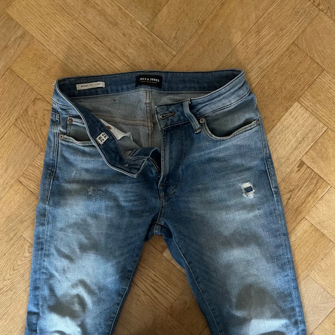 Säljer ett par jeans från Jack & Jones, modell Liam. Jeansen har slitna detaljer och är inte använda mycket, därmed mycket bra skick! Jeansen är i ett stretchigt jeans-material. Nypris ca 900kr.