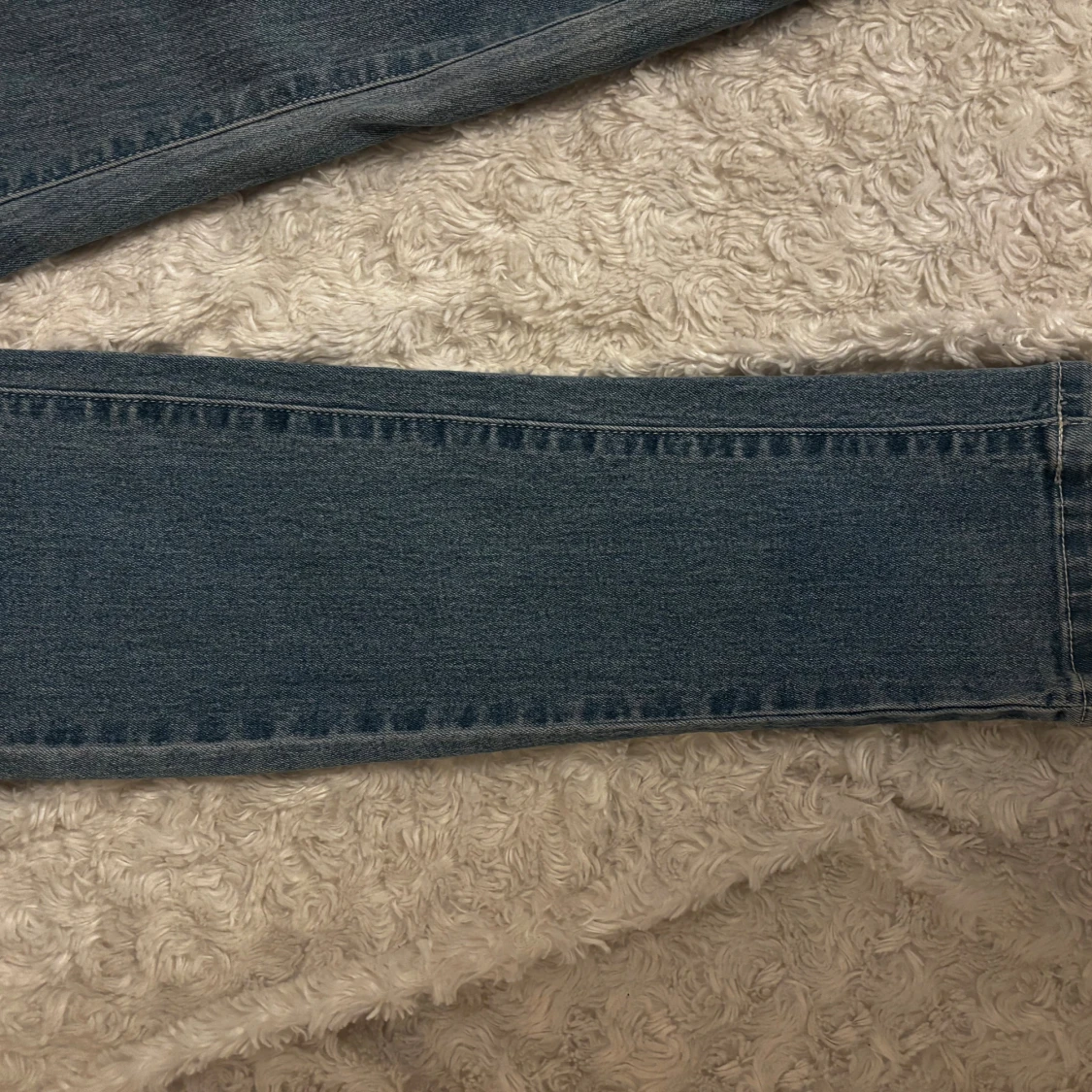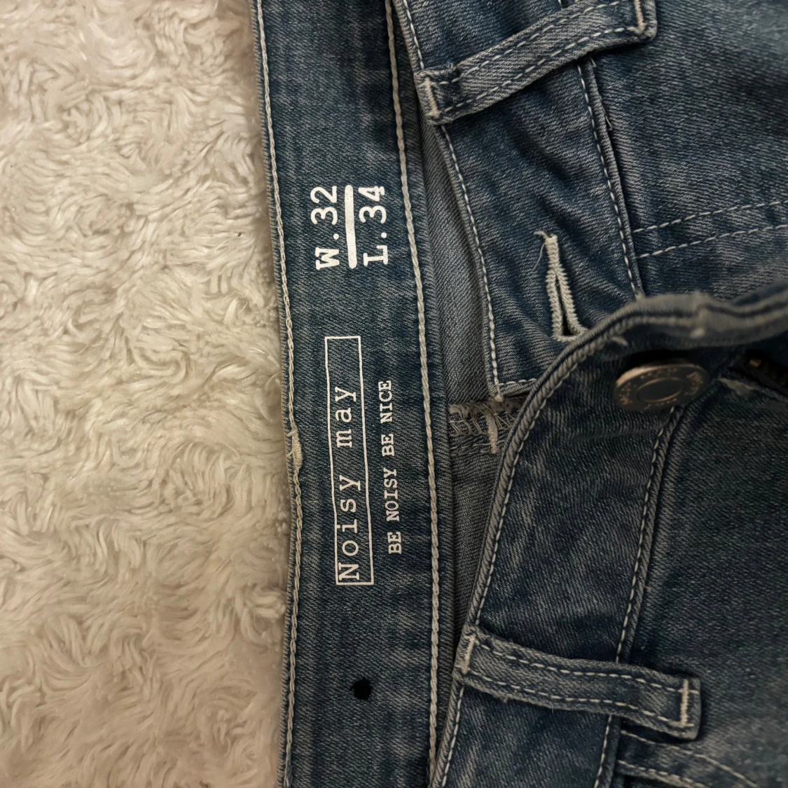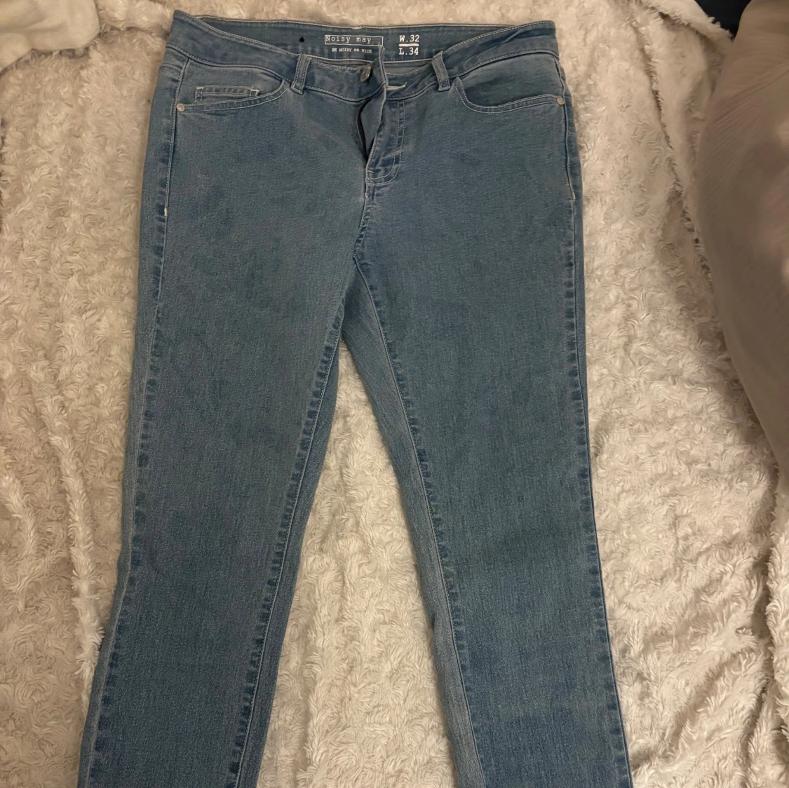 Snygga blå skinny jeans från Noisy May med klassisk femficksdesign och normalhög midja. Jeansen är i stretchigt denimtyg som sitter tight hela vägen ner och har en enkel, stilren look utan slitningar eller mönster.