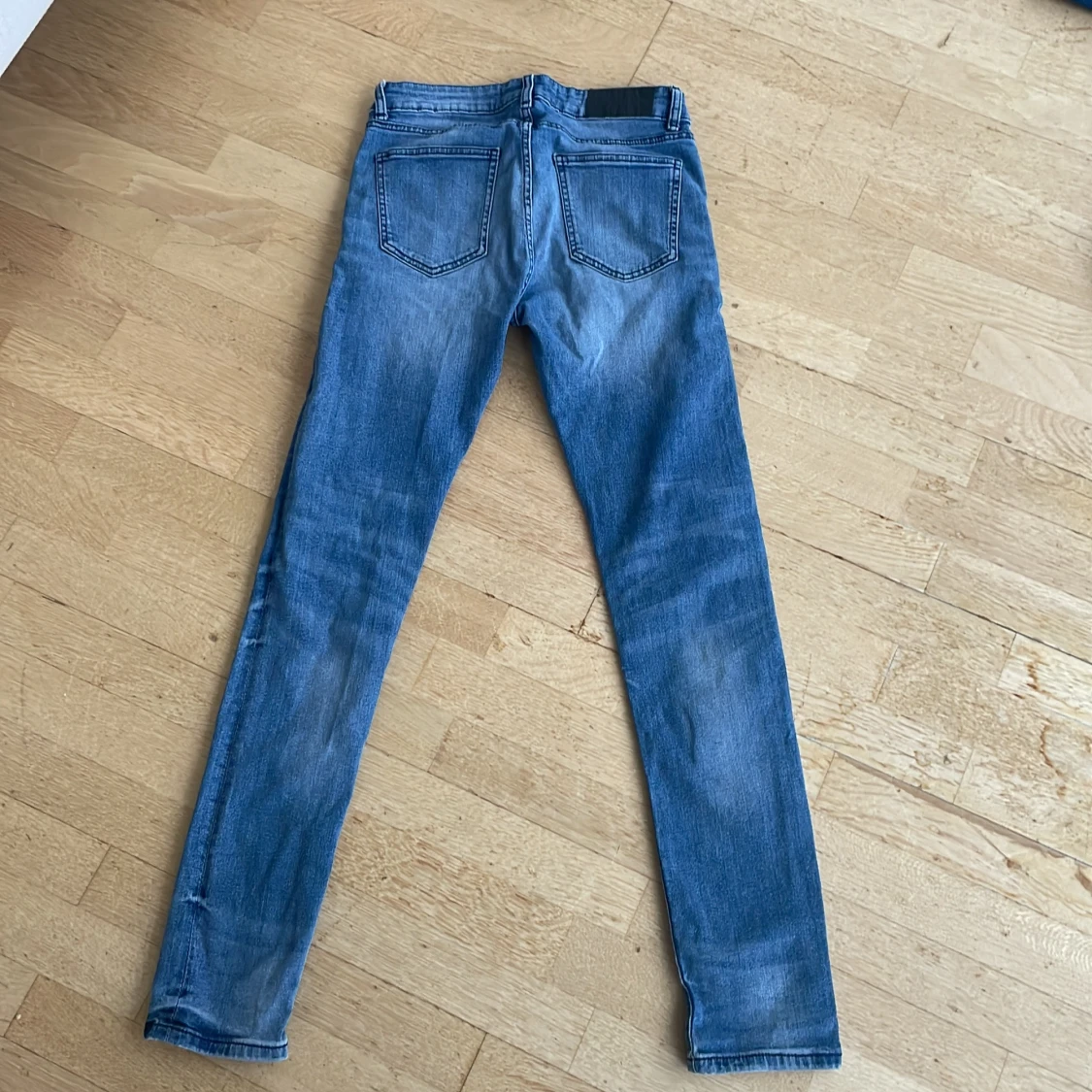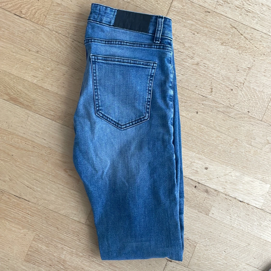 Snygga blå jeans med smal passform och klassisk femficksdesign. Jeansen har en mörkare tvätt med lätt slitning och raka bakfickor. Materialet är mjukt jeans och midjan är normal. Perfekt för dig som gillar en stilren och enkel look.