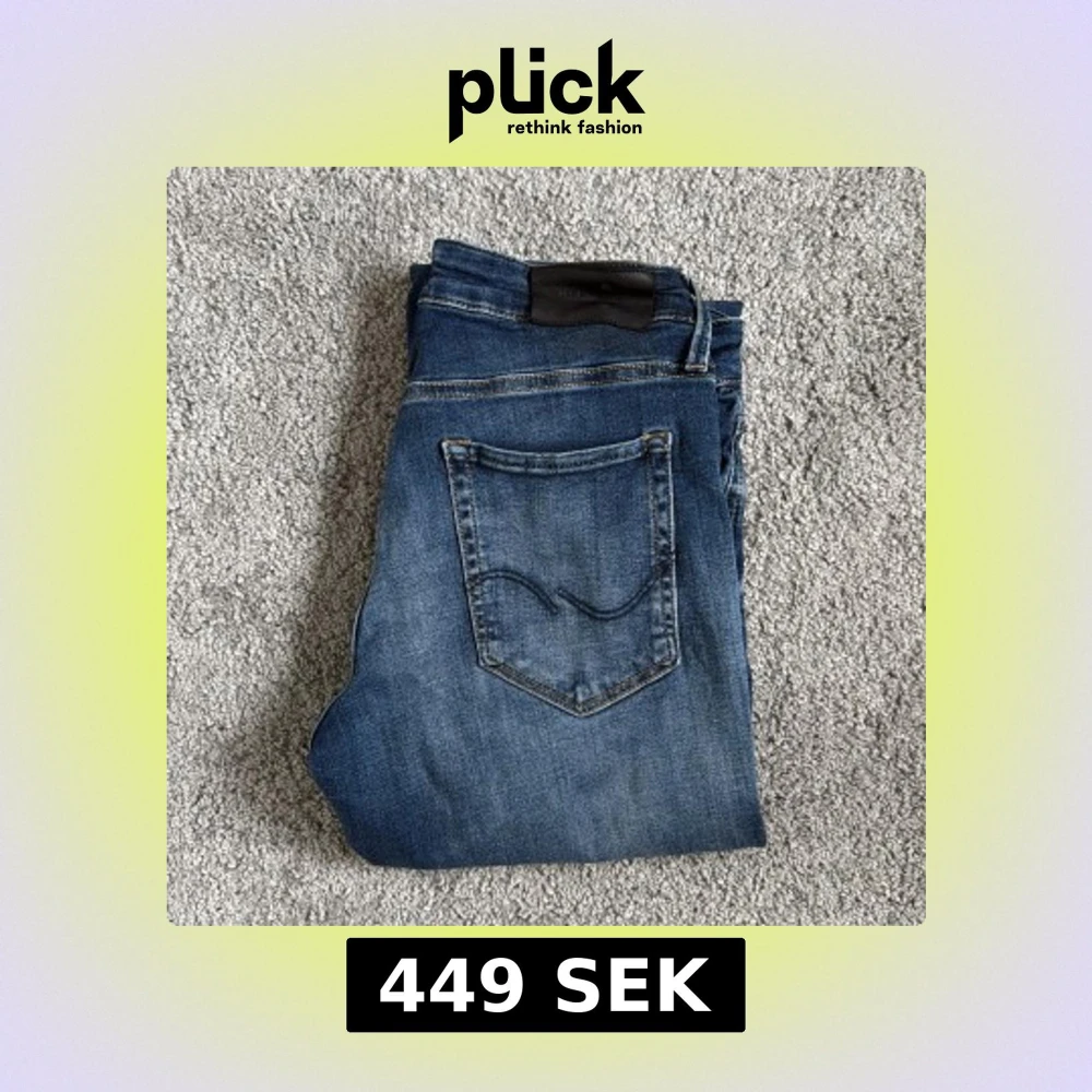 Snygga blå jeans från Jack & Jones med klassisk fyraficksdesign och slim passform. Jeansen har kontrastsömmar, knapp och dragkedja i gylfen samt en mörk tvätt med lätt slitning. Perfekta för dig som gillar en smal siluett och stilren look.
