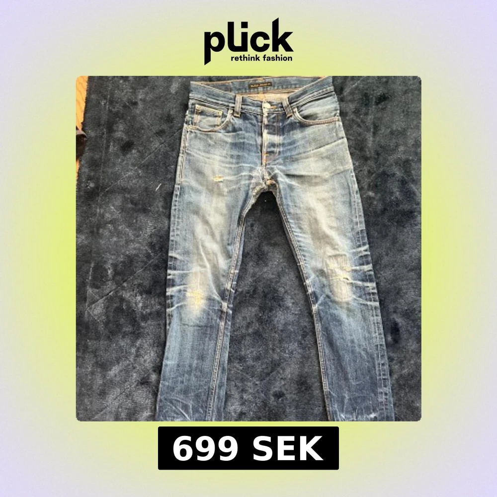 Säljer min skatt från nudie jeans då jag tyvär vuxit ur dem. Är av deras Re use men inte en vanlig modell utan ett visningsexemplar som de lät mig köpa. Är i storlek 31:32 men passar mer som en 30 i midjan. Har en Slim passform likt grim Tim. Hör av er för fler frågor. Mvh Charlie