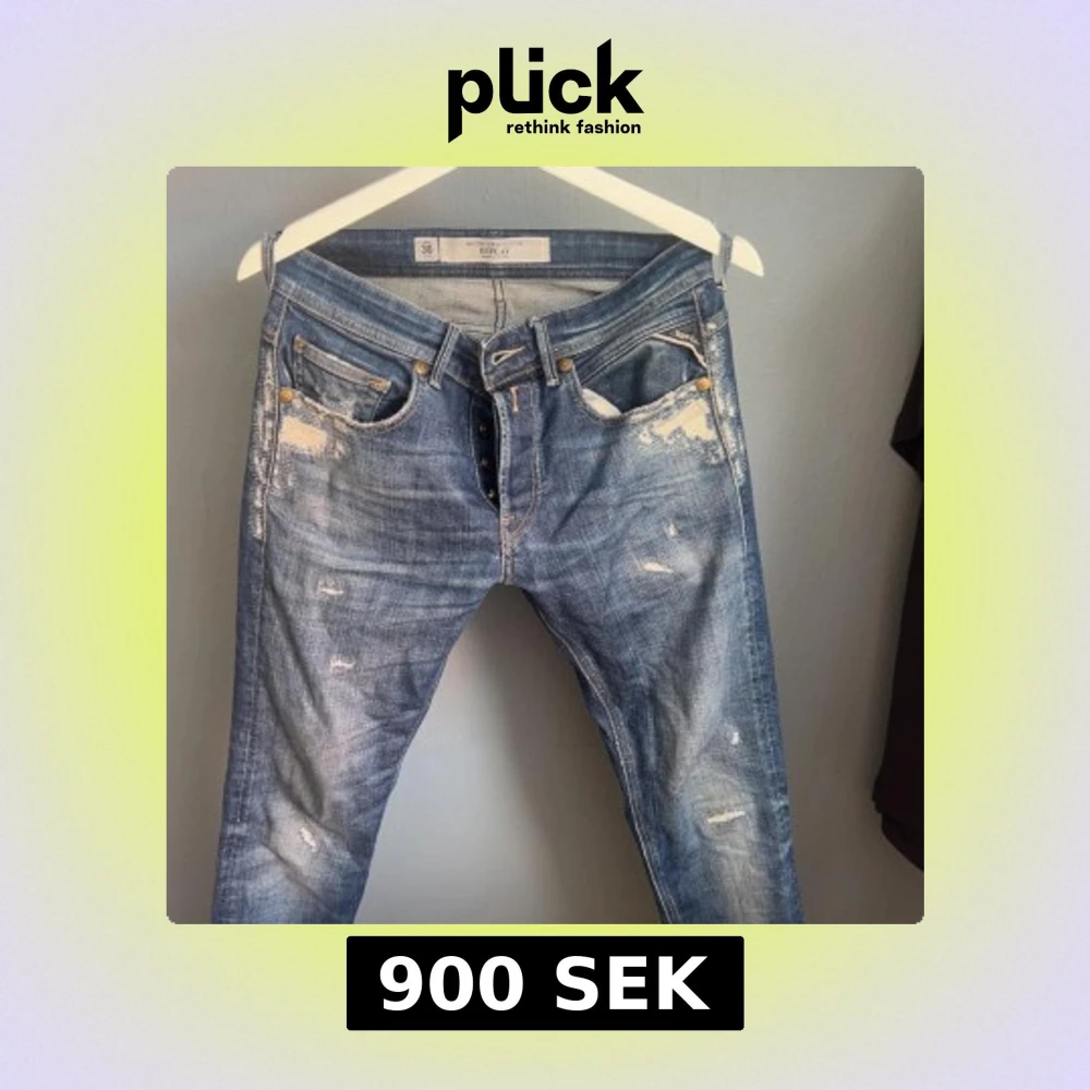 Snygga blå jeans från Replay med slitna detaljer och klassisk femficksmodell. Jeansen har ljus tvätt, gylf med knappar och broderade bakfickor. Perfekta för en avslappnad streetstil och passar dig som gillar en trendig look.