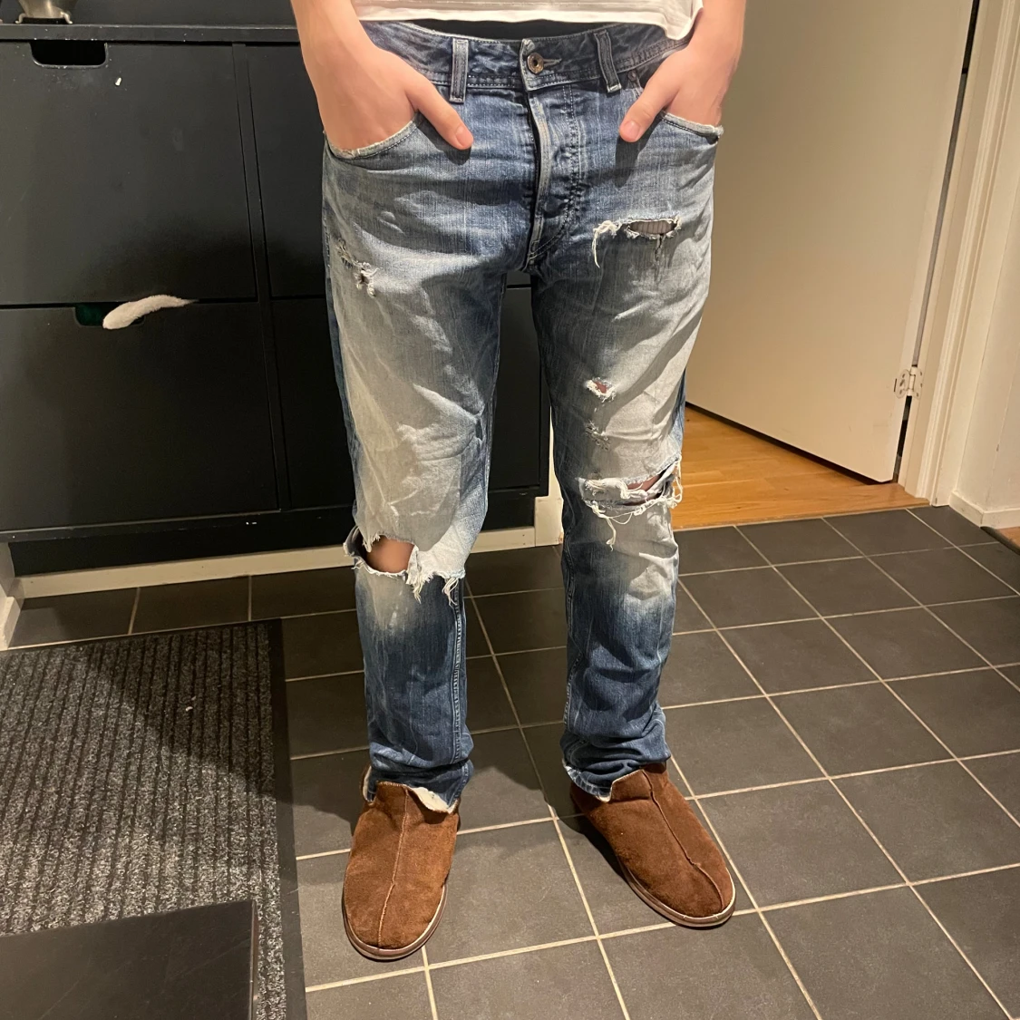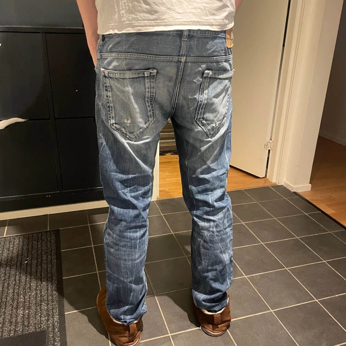 Coola jeans i storlek 32 från diesel, passar M. Modell är 190 och brukar bära 30 i midja och är lite stora i midjan. De är slim fit på dom