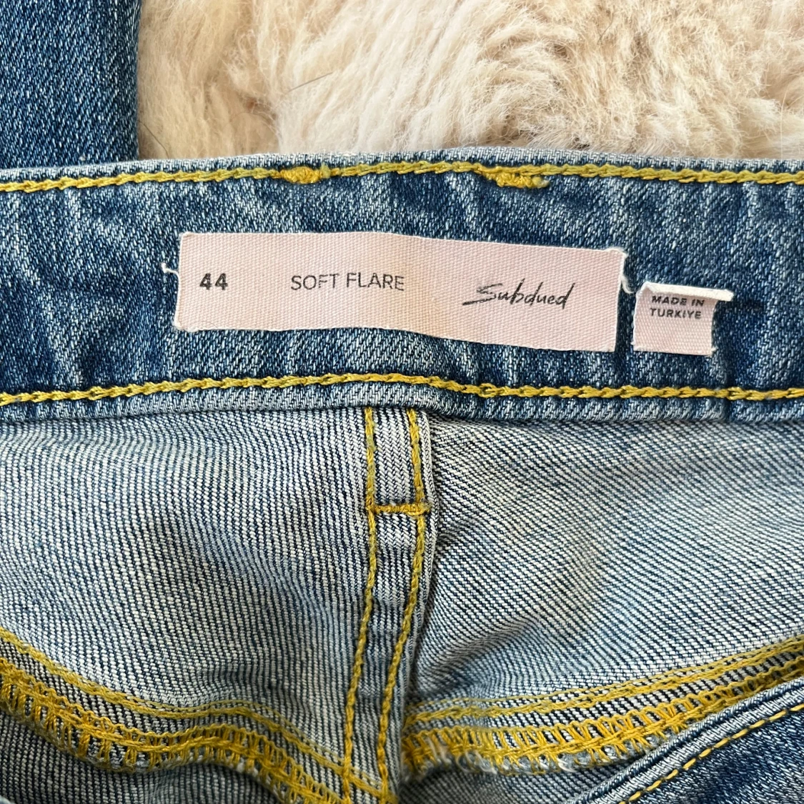 Säljer ett par blå jeans från Subdued i modellen Soft Flare. Jättefint skick använda fåtal gånger, står storlek 44 men är i engelsk mått. Passar mig som har ungefär 38 eller 27-28w i jeans. Nypris 1100kr