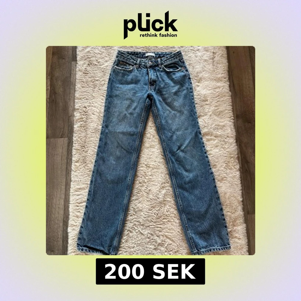 Säljer ett par snygga blå jeans från Ginaticot i storlek 34. Dom är använda ett fåtal gånger men är i jätte fint skick. De har en rak passform och sitter super snyggt.