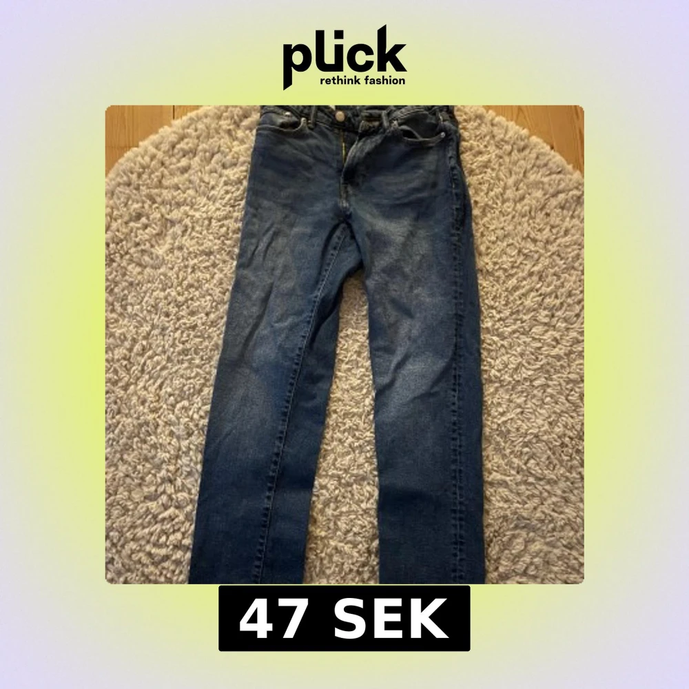 Säljer ett par klassiska blå jeans från H&M med straight regular fit. Jeansen har fem fickor, normal passform och snygga kontrastsömmar. Perfekta för dig som gillar en enkel och tidlös stil.