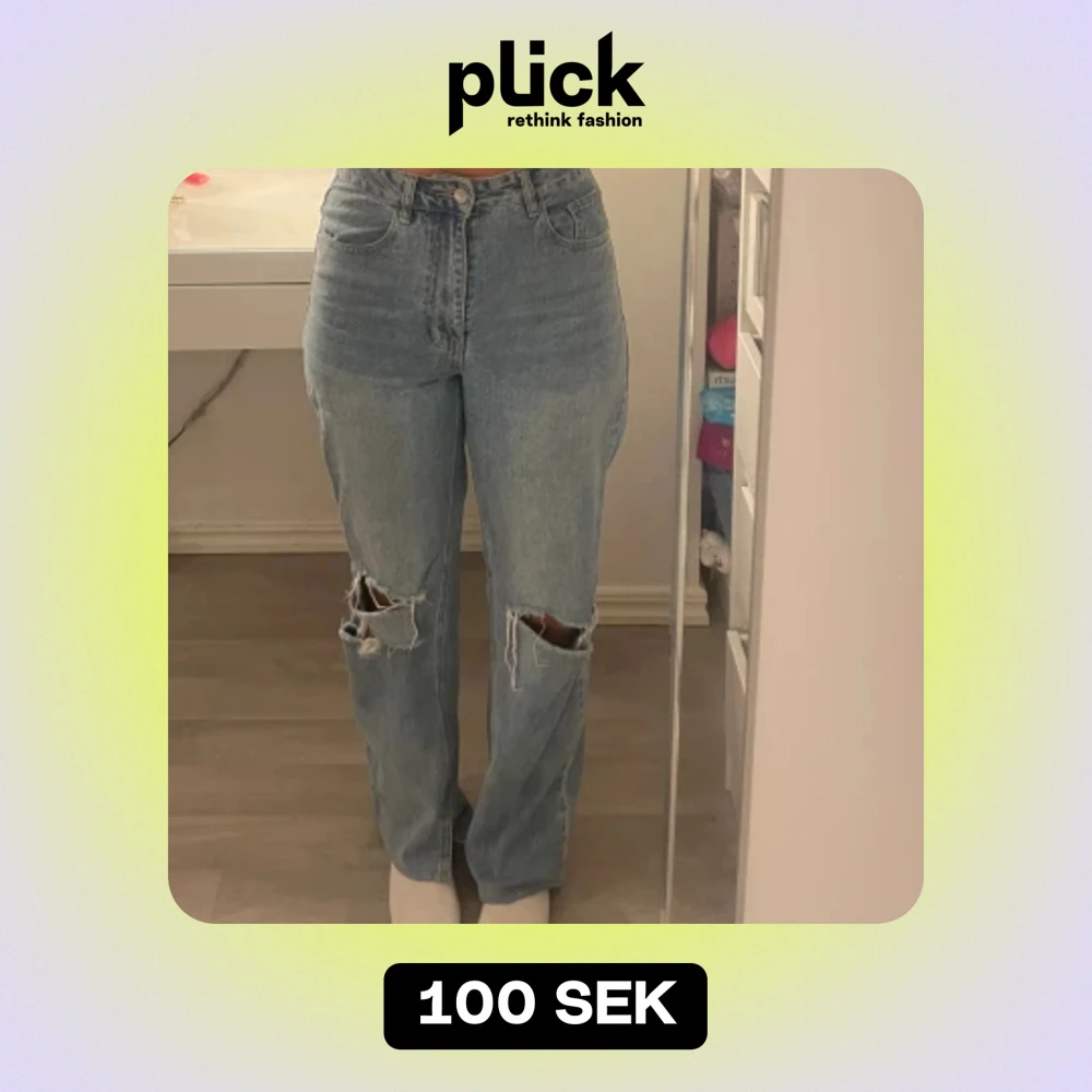 Blå raka slitna jeans från SHEIN i storlek 40 men har sytt in dom uppe hos skräddaren så man kan säga att den är storlek 38, bra skick👌. Jag betalar frakt vid varor över 350kr, passa på att ta fler varor för att spara pengar. Perfekta inför sommaren👌