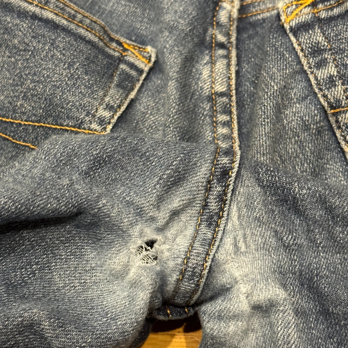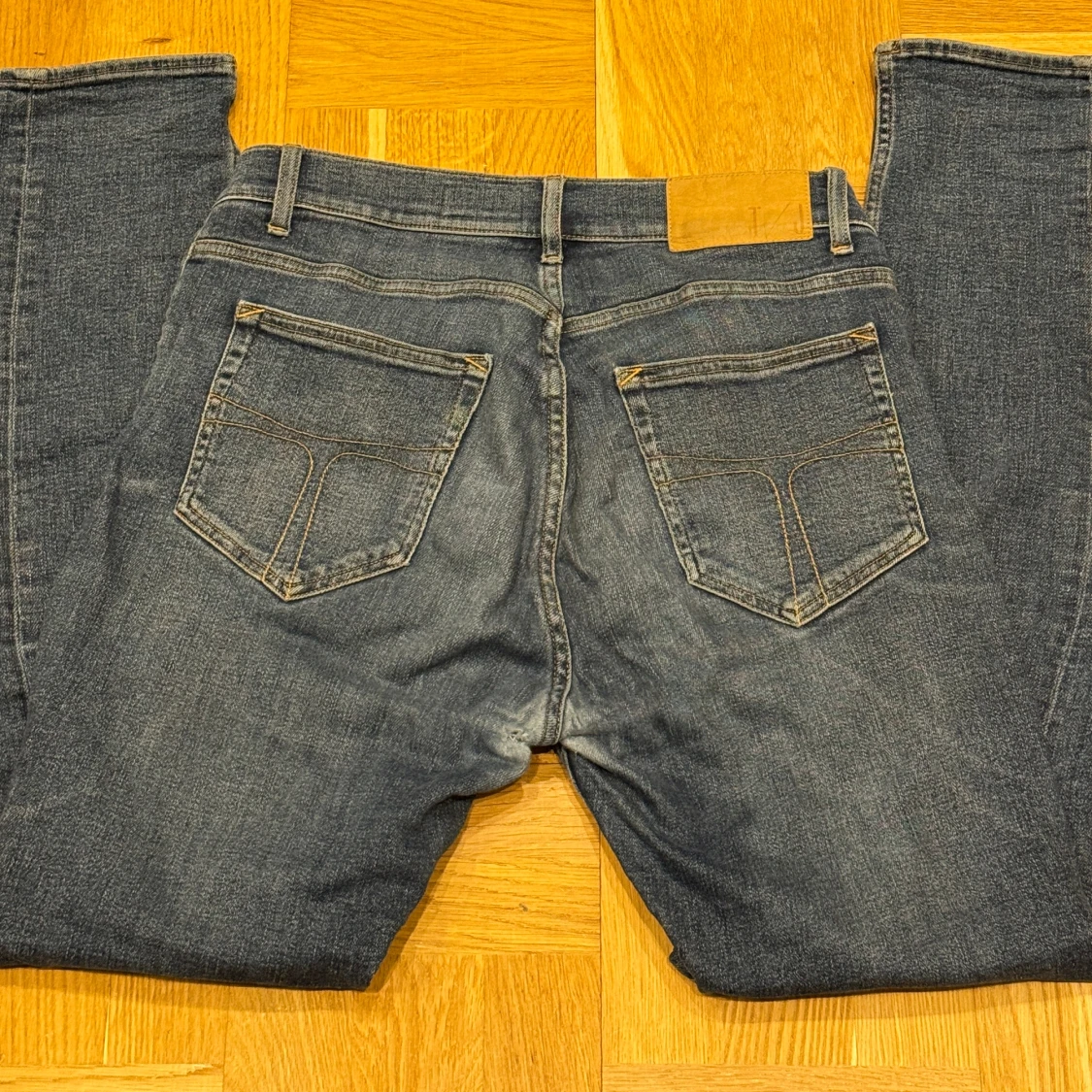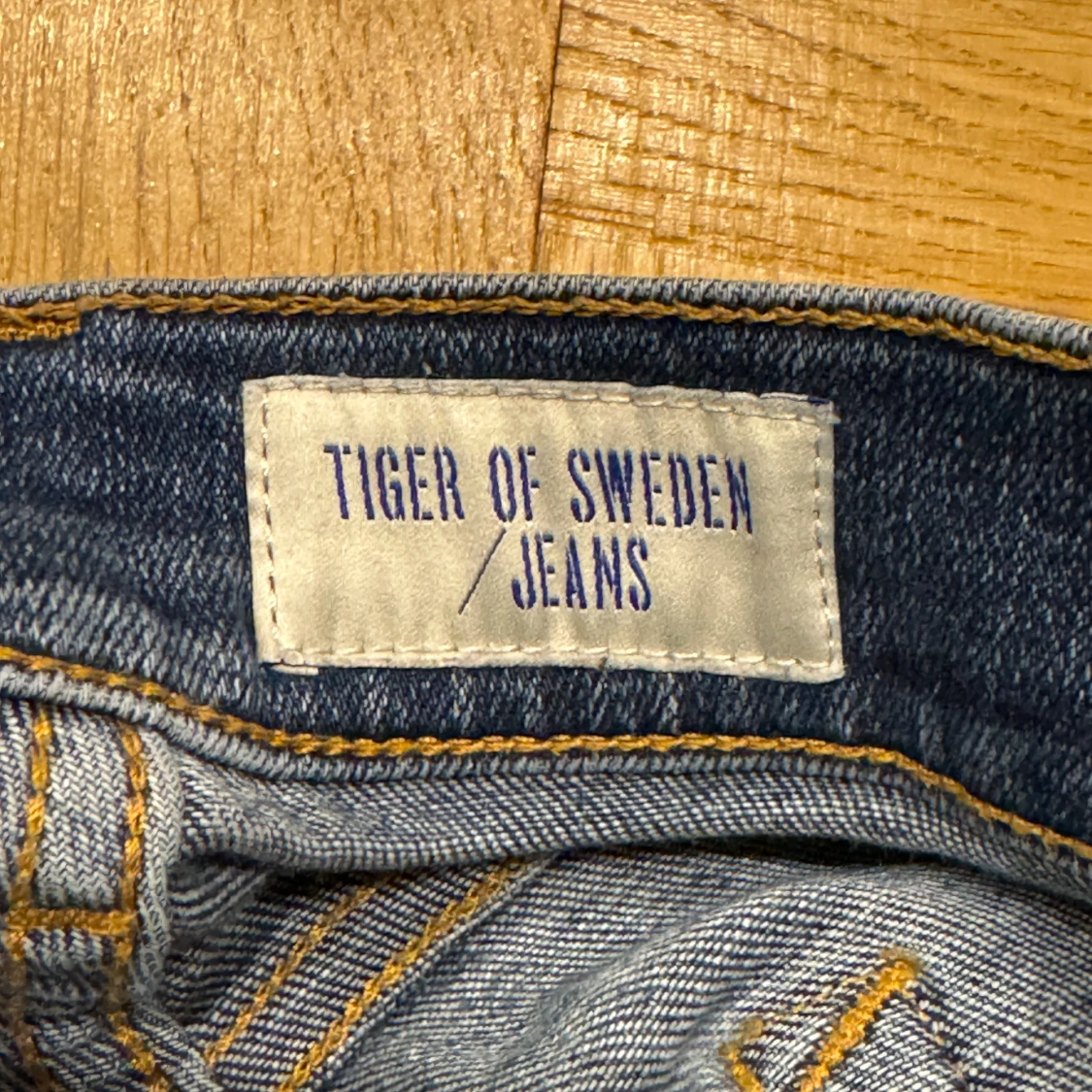 Blå jeans från Tiger of Sweden i modellen Evolve. Rätt bra skick förutom en slitage i grenen. Hör av er vid frågor eller funderingar.