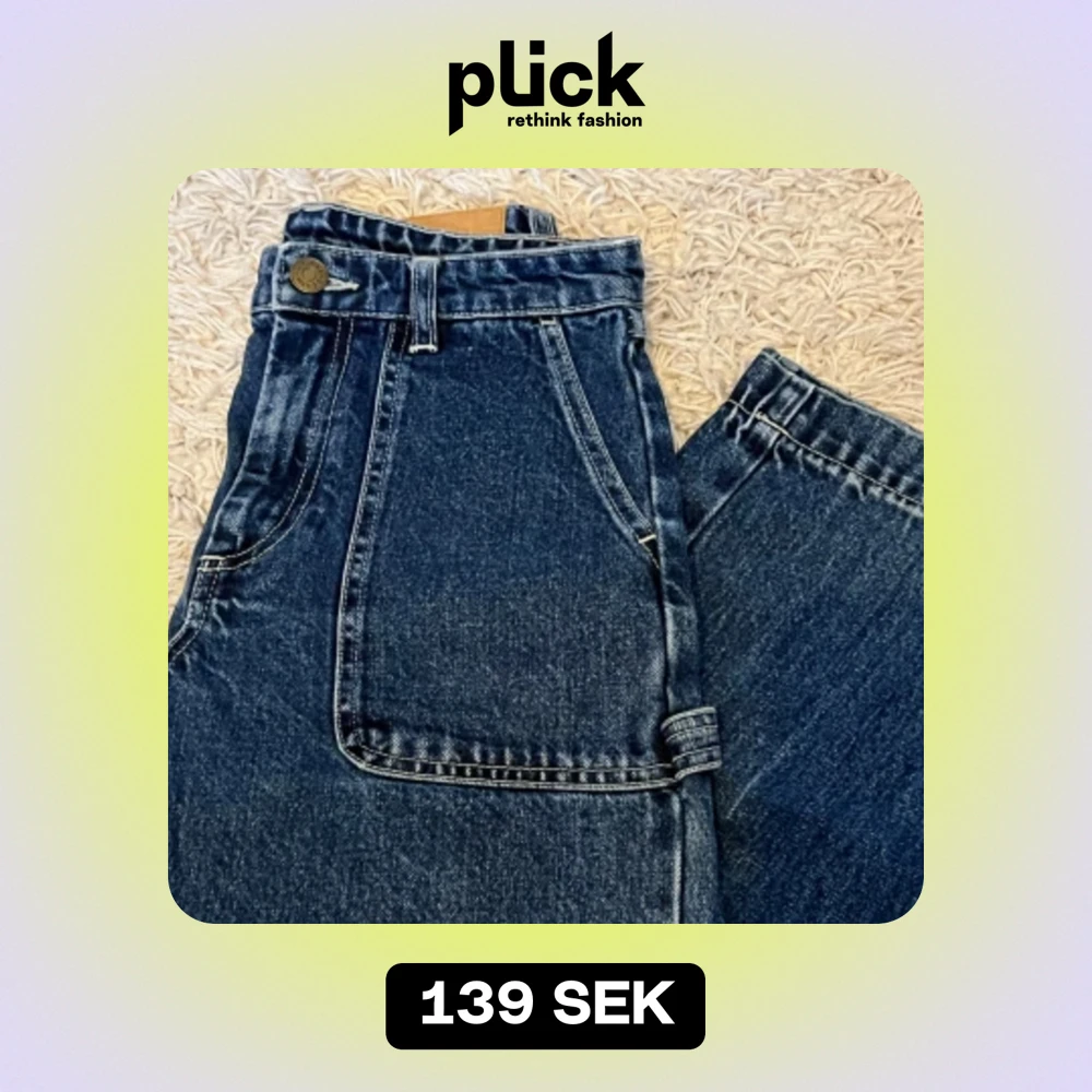 Gulliga blåa jeans från Monki i bra skick! Storlek 24 i midjemått! Modell - lite kortare vida jeans, en detalj på vänster byxben! Pris 139 + frakt