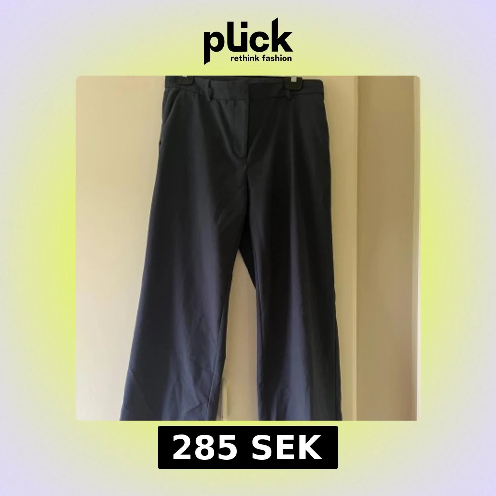 Blåa kostymbyxor från Weekday i storlek 40. Byxorna har medelhög midja och fickor back och fram. Säljer då jag ej får andvänding av de längre. Är uppsydda så de passar mig 163cm men går att återställa till original längd. Har endast andvänt de ett fåtal gånger.