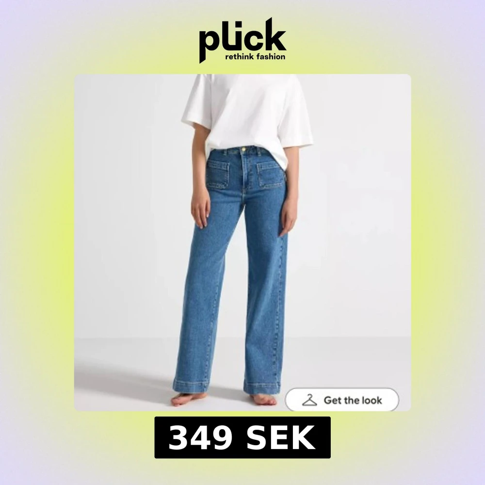 Säljer ett par blå jeans från Lindex i modellen wide. De har hög midja, raka vida ben och stora fyrkantiga fickor fram.