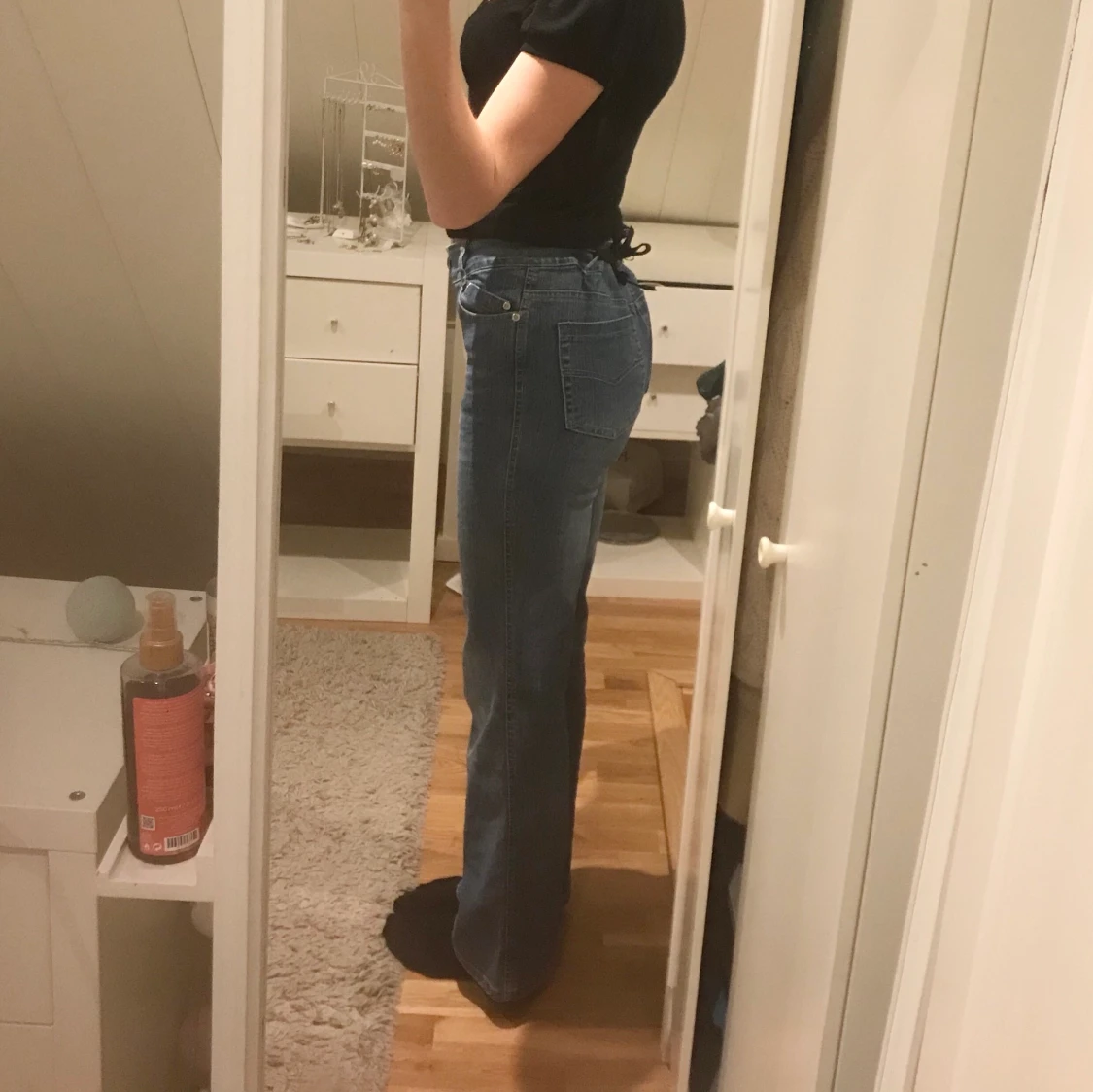 Väldigt snygga vintage jeans som jag köpte här på plick, men som jag tyvärr inte har använt så mycket. Dom passar perfekt i längden på mig som är 172, dock är dom lite för stora i midjan så jag brukar ha ett snöre där bak. Kontakta mig så kan jag skicka fler bilder! :) 110kr + frakt, eller mötas i Stockholm