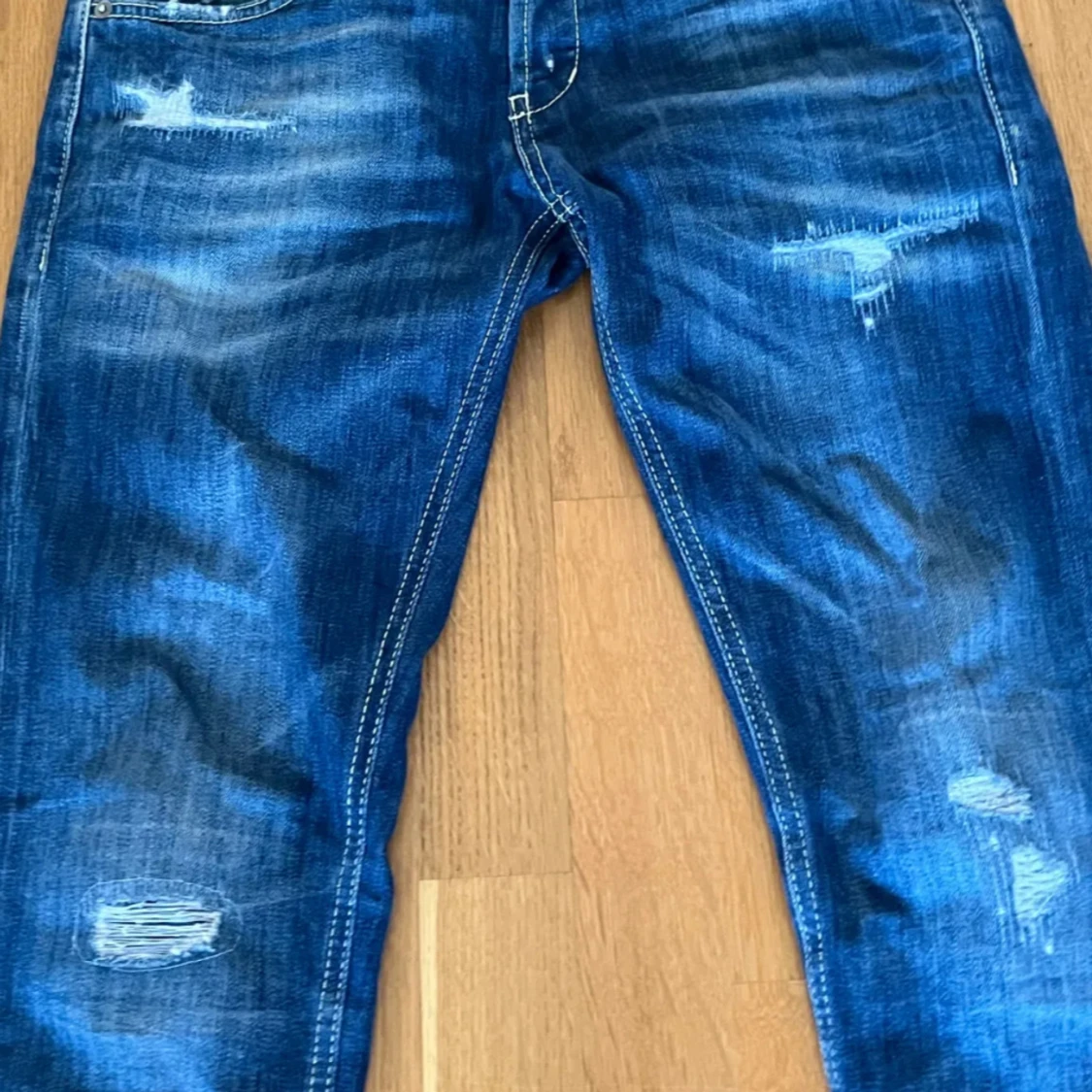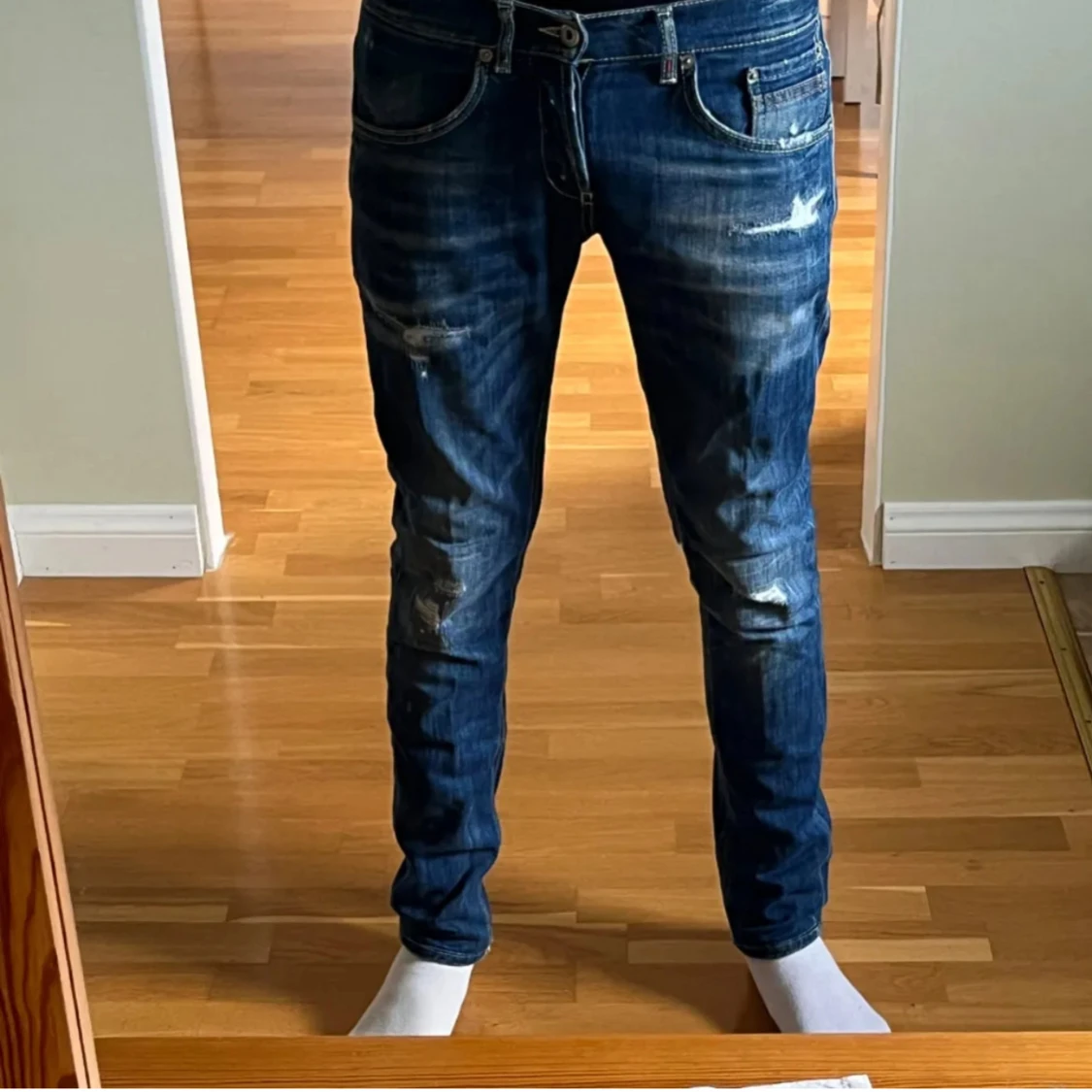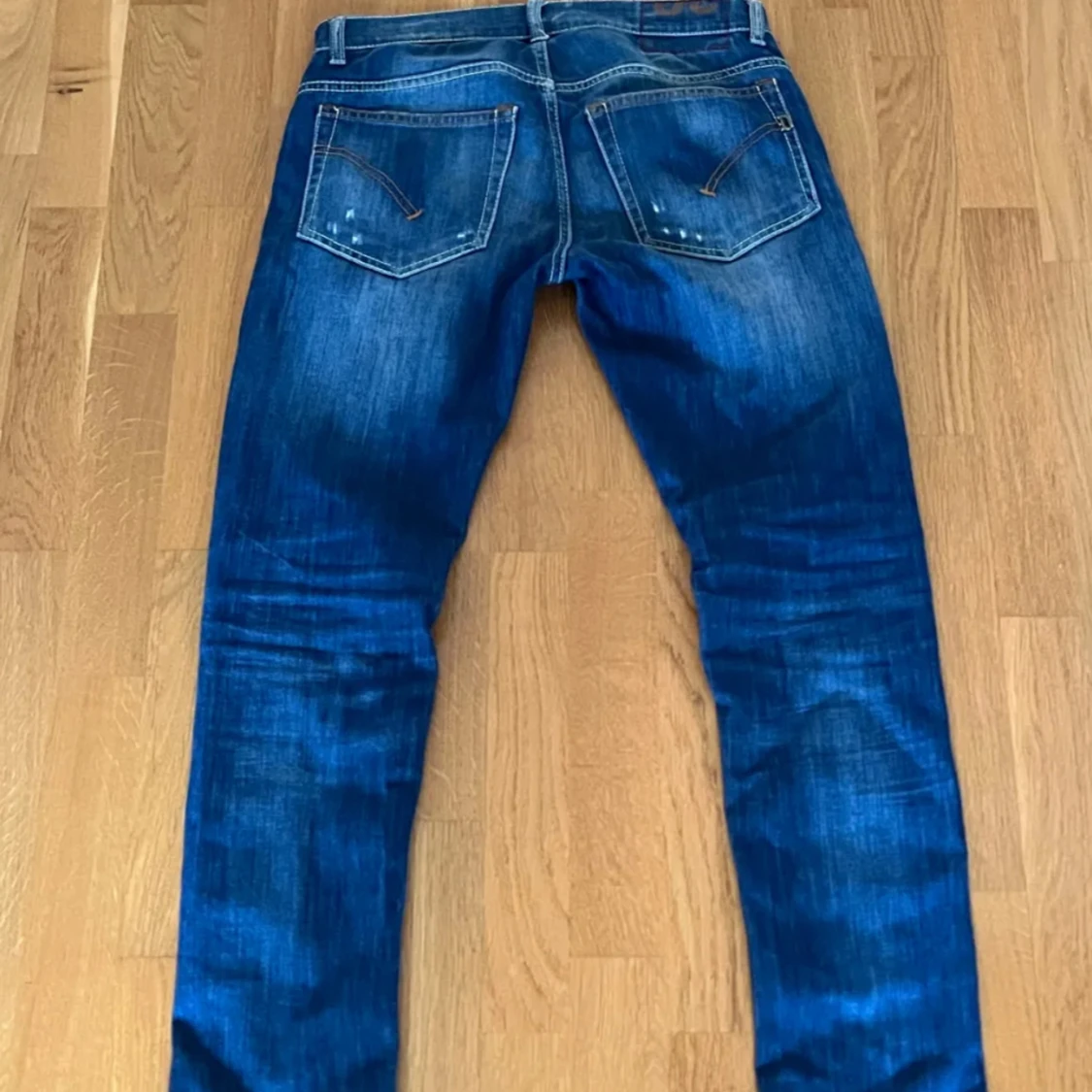 Säljer ett par riktigt schysta jeans från dondup. De är ett par blå jeans med lite tvätt och slitningar som gör dom rätt populära. Modellen är Ritchie som är lite smalare i passformen. Skulle rekommendera mellan 170-175 cm lång och runt 55 kilo. Jeansen läggs ut för 800 men kan tänka mig att gå ner vid snabb affär. Om du vill ha mer bilder eller har funderingar så är de bara att höra av sig.