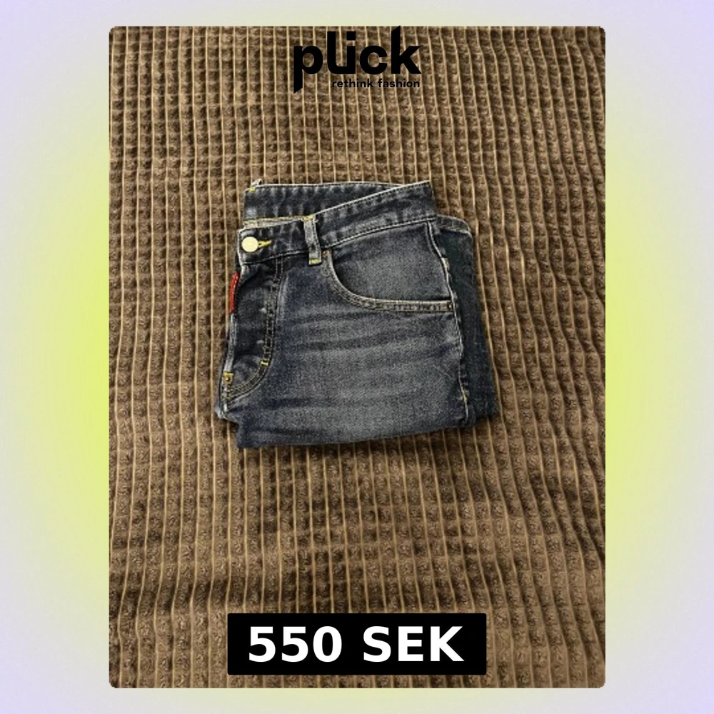 Snygga mörkblå jeans från Dsquared2 med skinny passform och klassisk femficksdesign. Jeansen har gul kontrastsöm, Dsquared2-logga på röd etikett vid gylfen och läderpatch bak i midjan. Materialet är slitstarkt denim med lätt tvättad look.