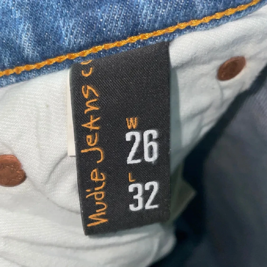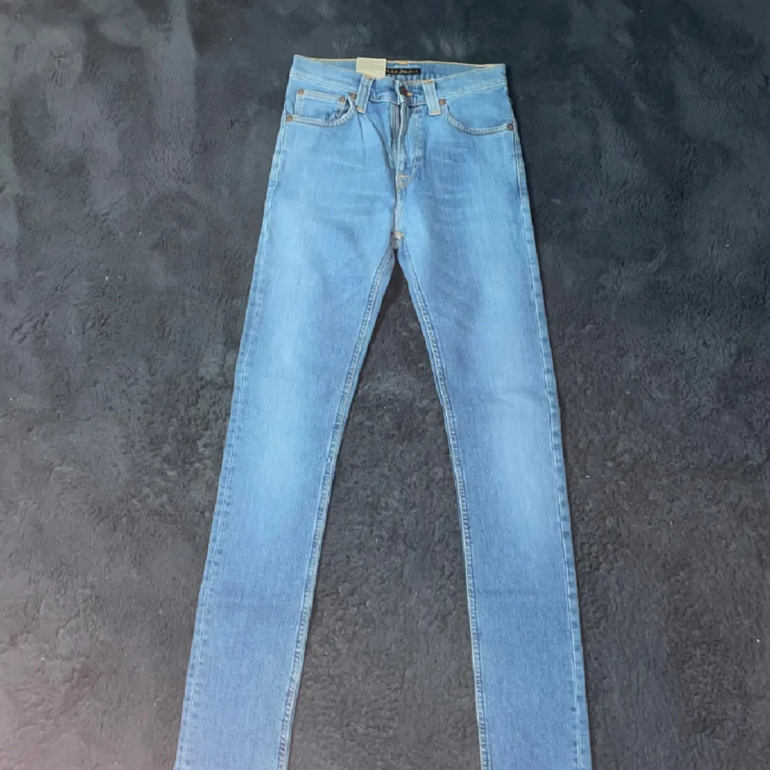 Snygga ljusblå jeans från Nudie Jeans med en klassisk femficksdesign. De har en slim passform och är tillverkade i högkvalitativt denim. Perfekta för en stilren look. Dem är också helt nya! (Bilderna är inte mina de är tagna från mella shop)