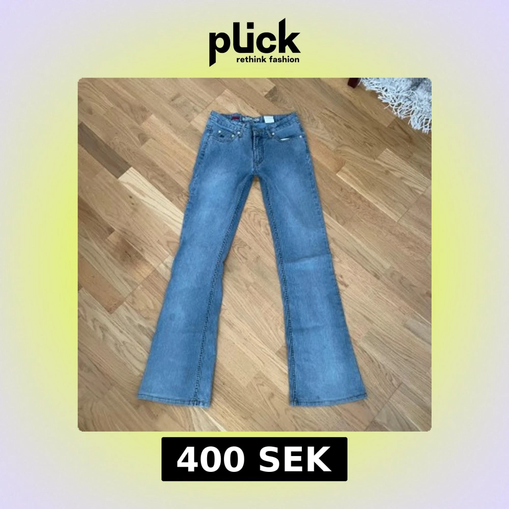 Supersnygga lågmidjade bootcut jeans i färgen blå! Vintage och går inte att få tag på längre! De har en liten fläck längst nere på benet(kolla sista bild) Storlek Xs, midja: 36 cm, midjehöjd: 20 cm, innerben: 75 cm