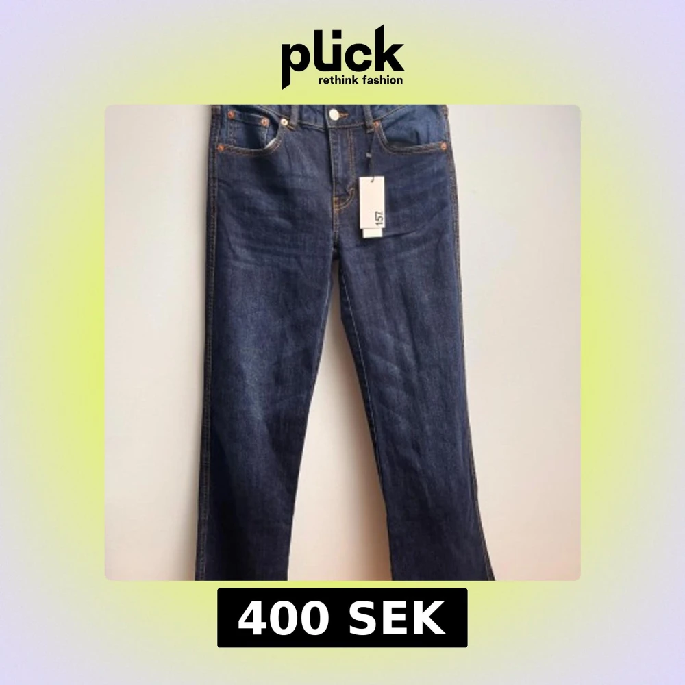 Raka blåa jeans från lager 157 med prislapp