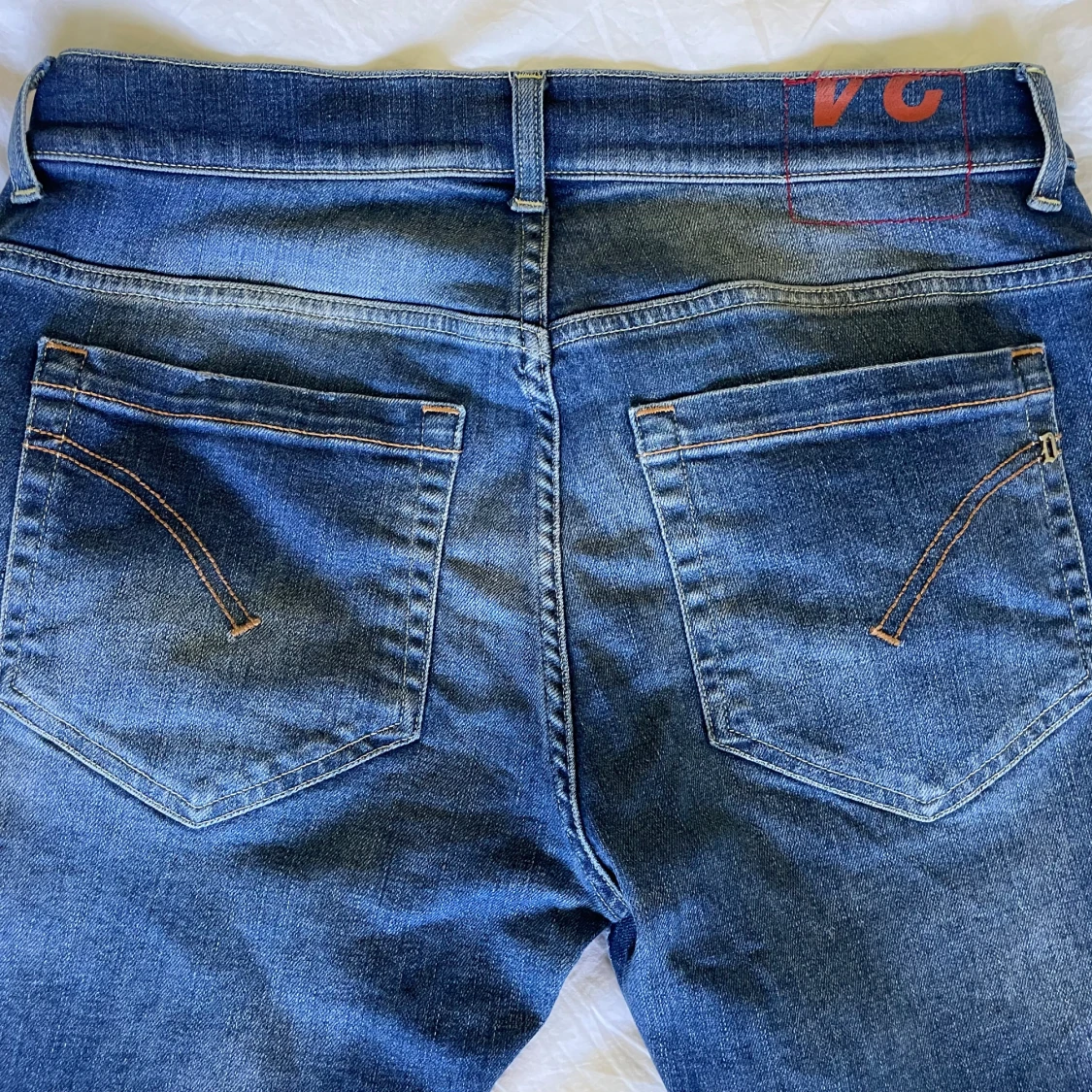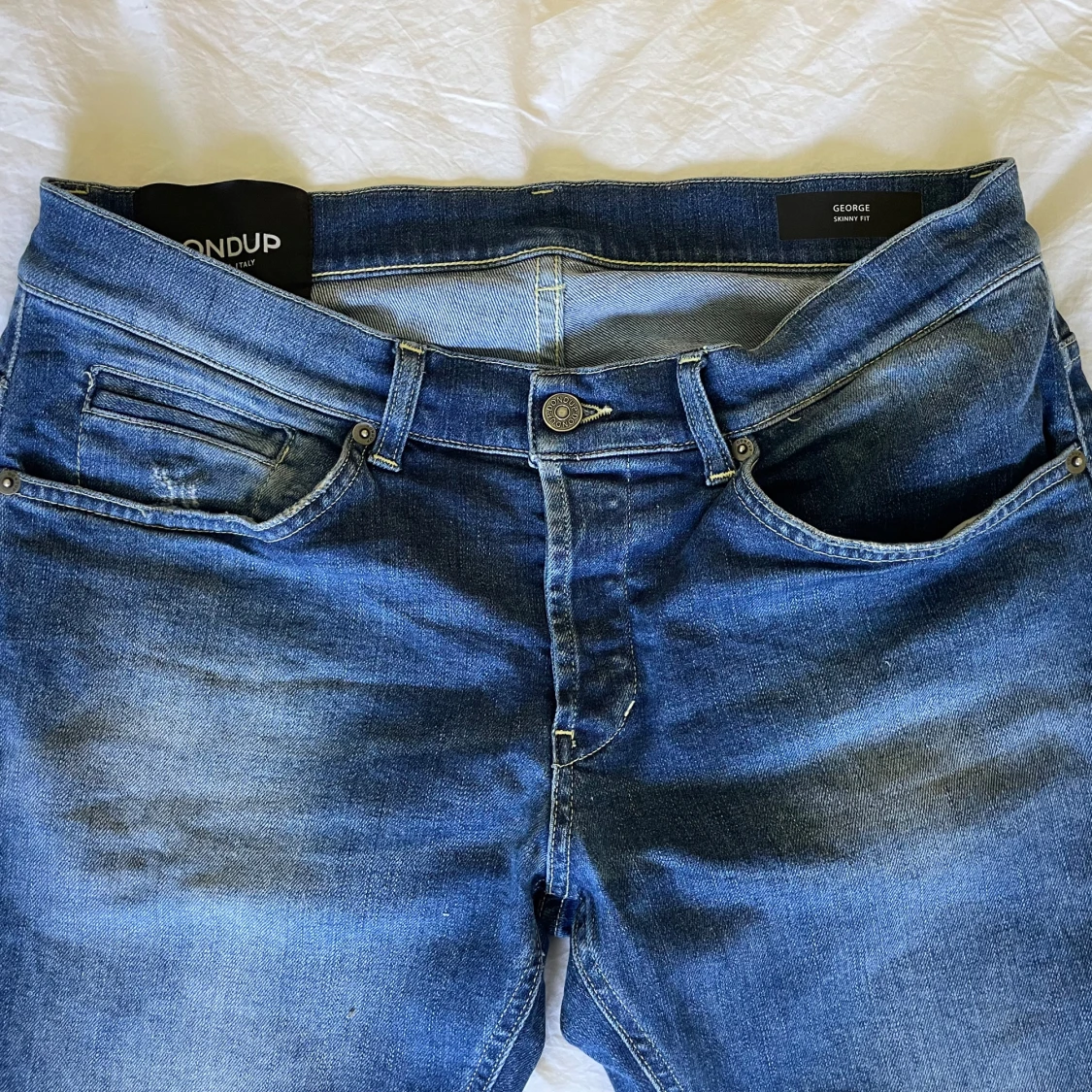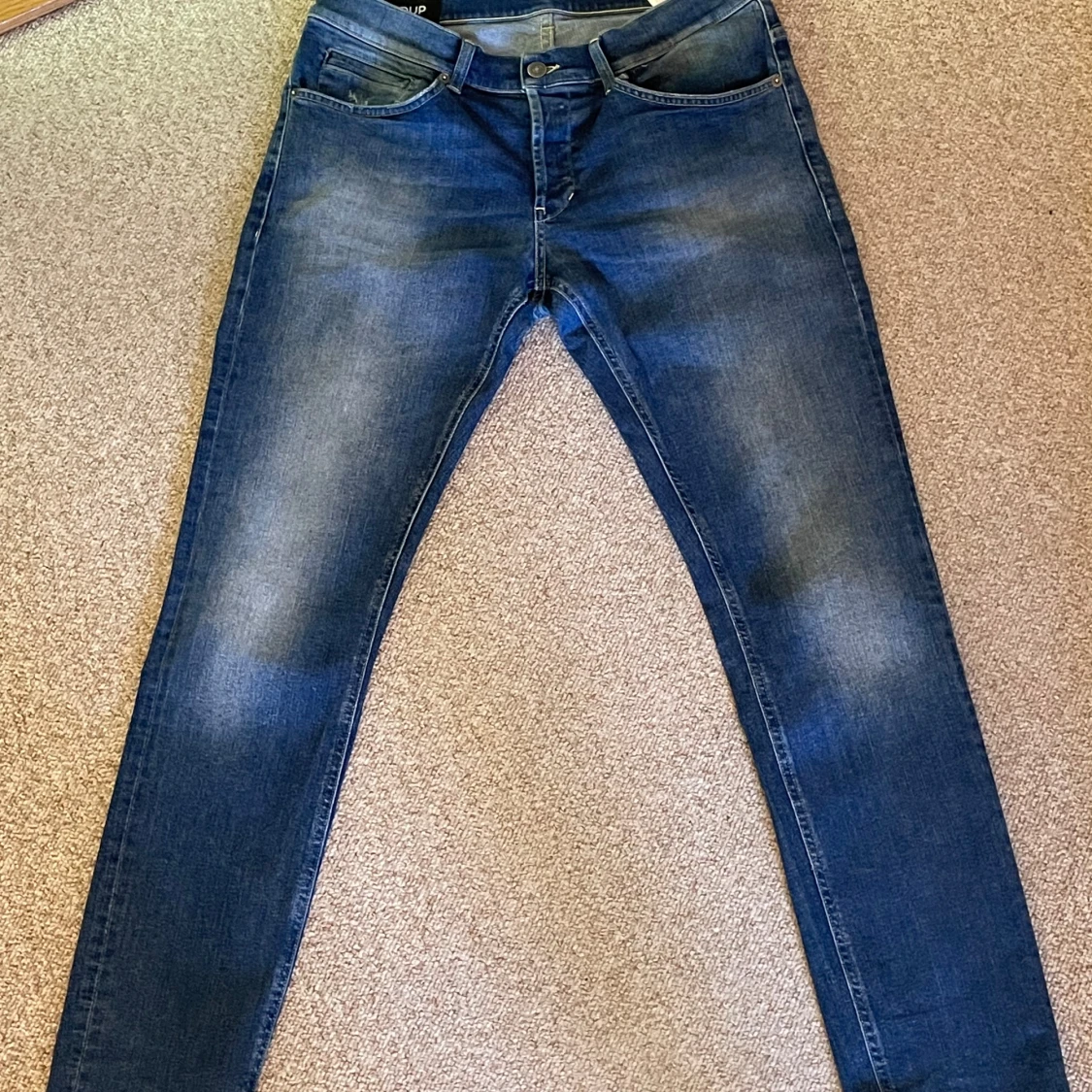 Ett par blå/mörkblåa jeans från Dondup i modellen Georg. Storleken är 34 och byxorna är i fint skick. Hör av dig för fler bilder eller frågor.