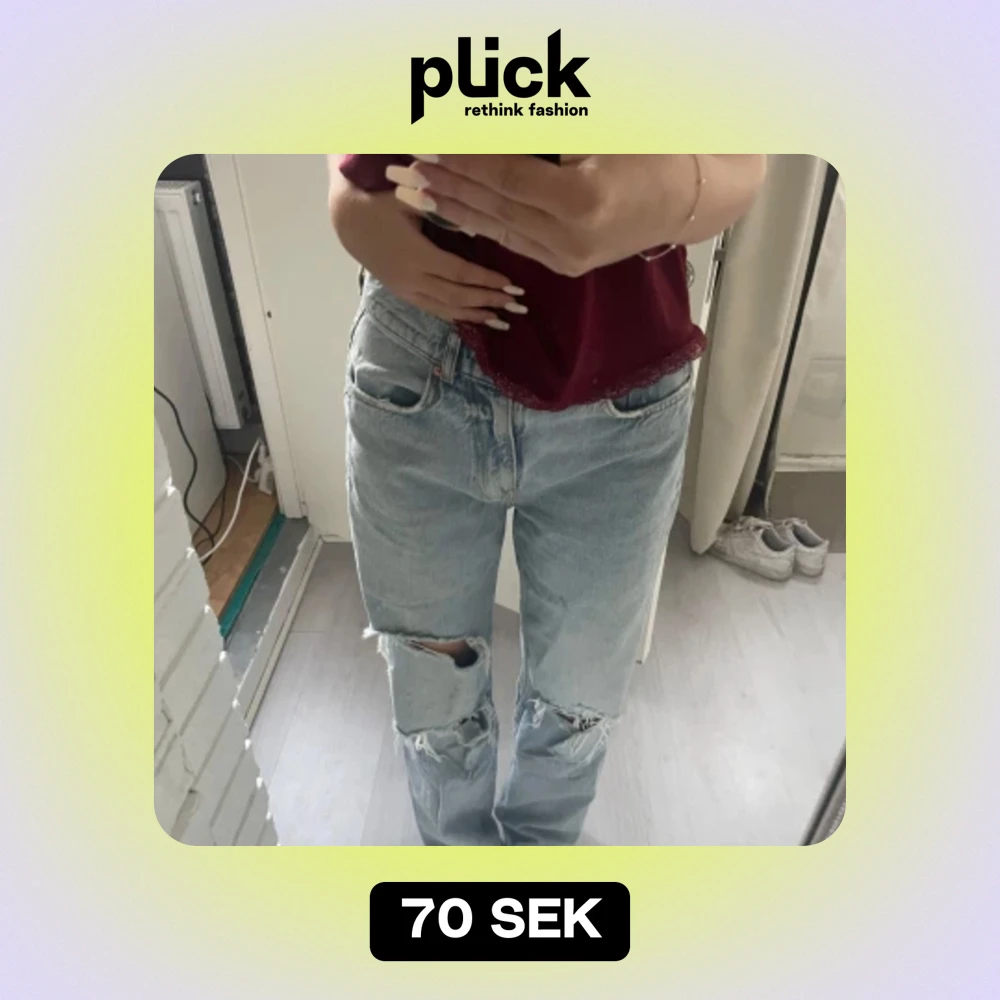 Sällhet jättefina midwaist jeans med hål från Gina Tricot i super bra skick (endast använd 3-4 gånger) lite baggy