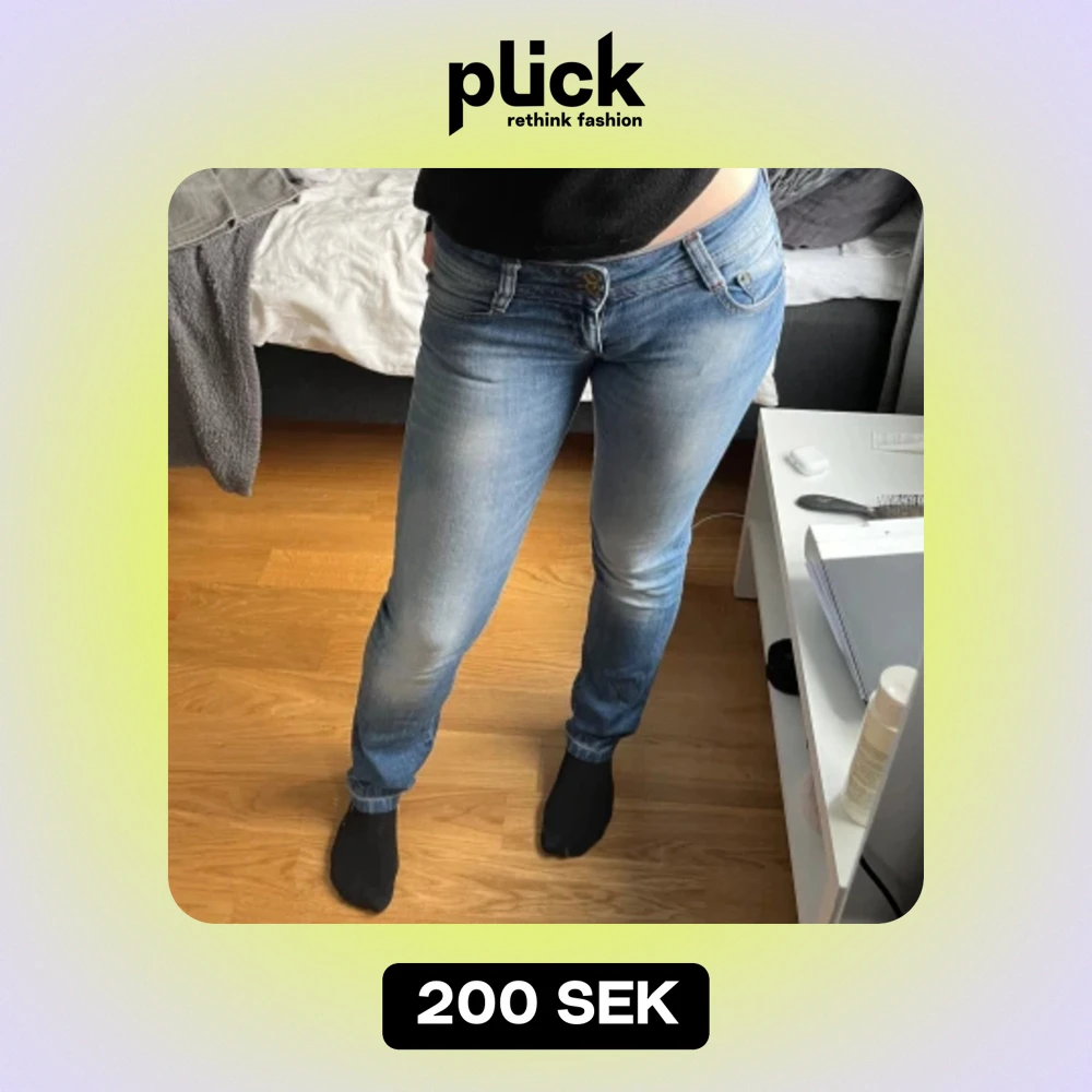 Säljer de här lågmidjade blåa jeansen som jag har spretat upp längst ner. De är lite slitna längst ner då jag inte sytt upp de efter jag spretade men det går snabbt att göra! Säljer då jag inte använder de längre 💕