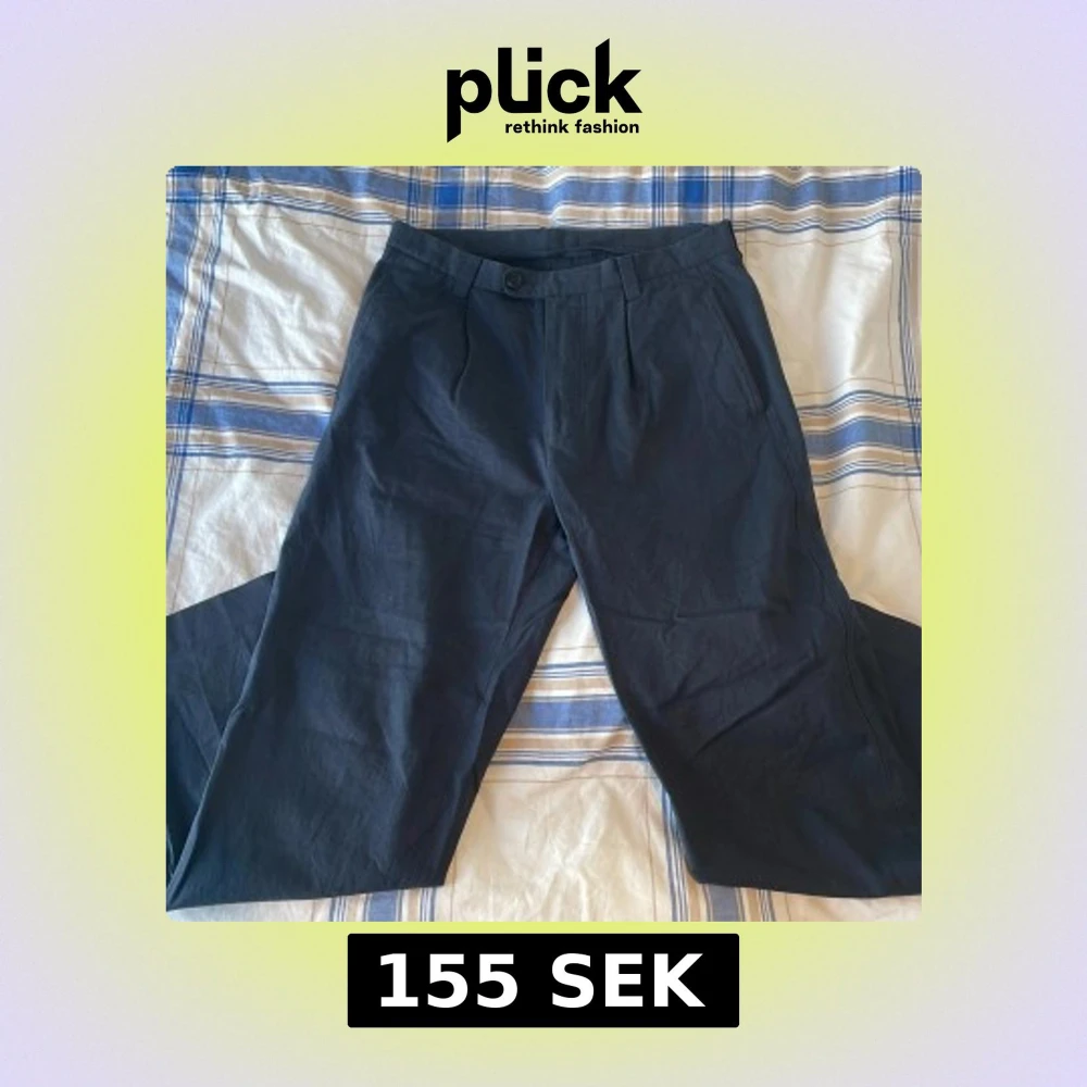 Säljer ett par blåa linnebyxor från Riley i storlek W30. Byxorna har klassisk passform med raka ben, sidofickor fram och bakfickor med lock och knapp. Materialet är mjukt och med 98% bomull och 2% elastan. Perfekt för en skön sommar look eller formella tillfällen. Pris går att diskuteras!