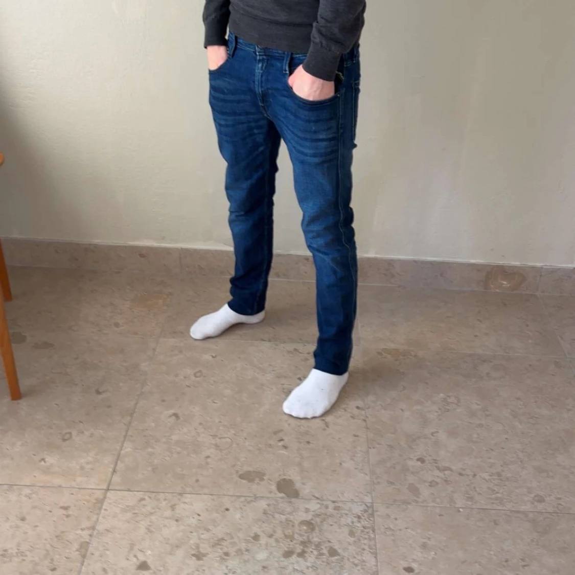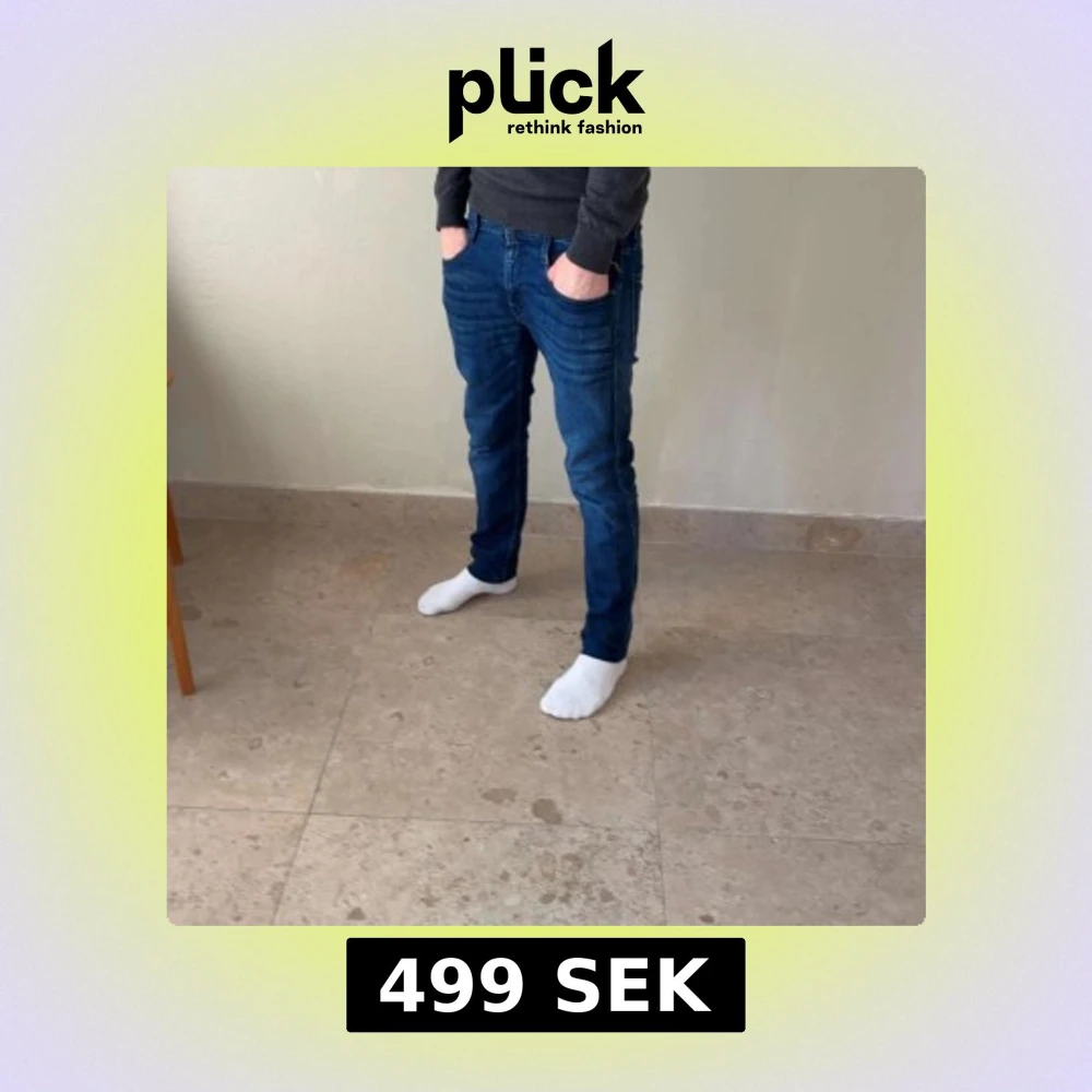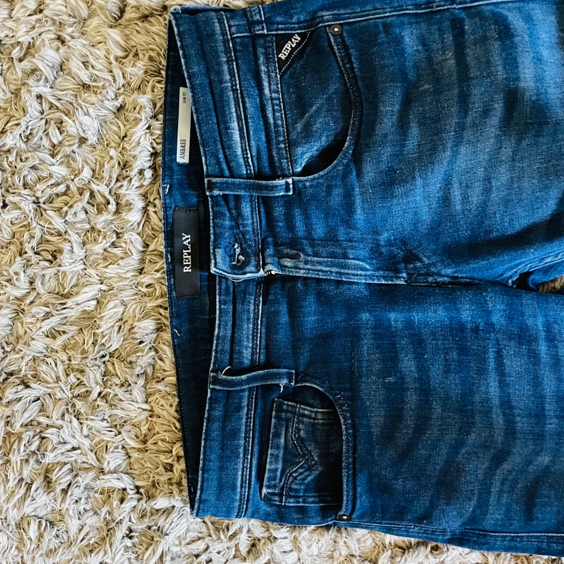 Säljer ett par snygga blå jeans från replay i modell anbass! Jeansen är i storlek W28 L32 och fint skick, hör av er om ni har några funderingar😁