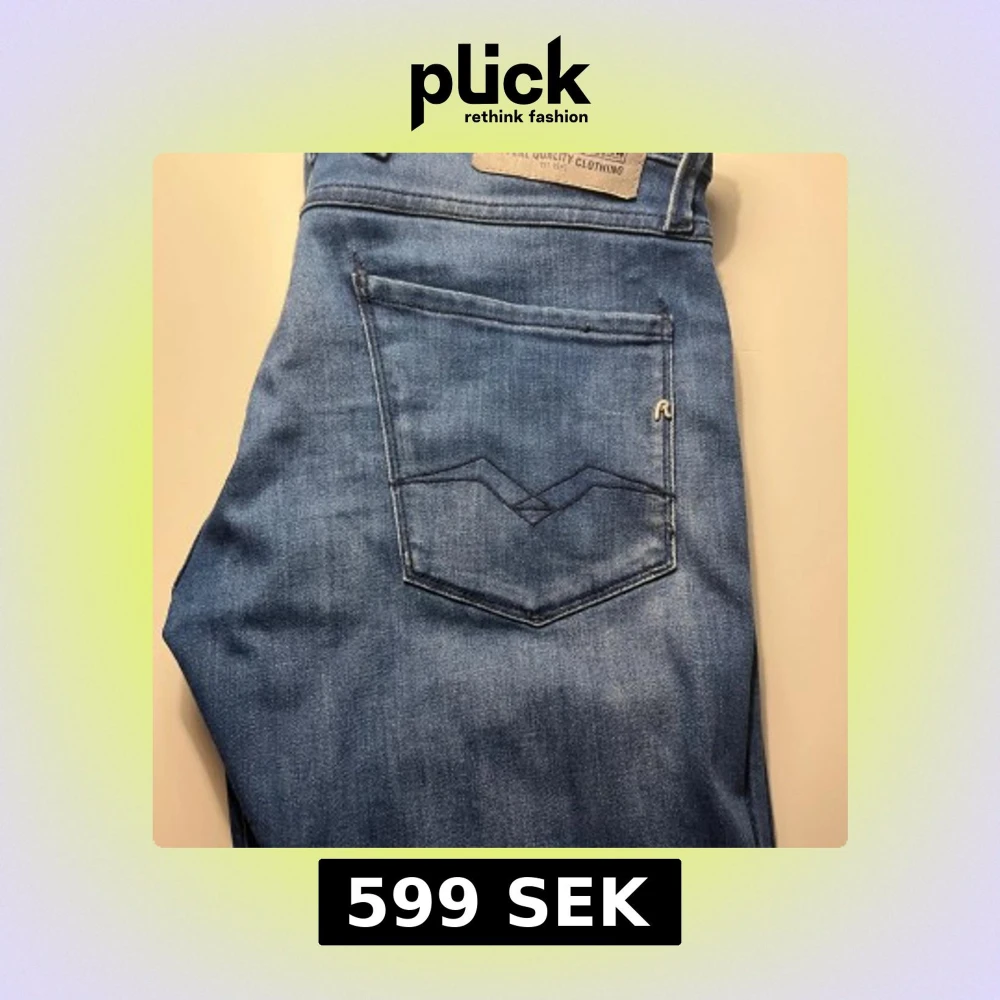 Snygga blå jeans från Replay med klassisk femficksdesign och knappgylf. Jeansen är helt nya och aldrig andvända. De är storlek 30/30 men passar 31/30 också. Skriv vid fler bilder eller funderingar!