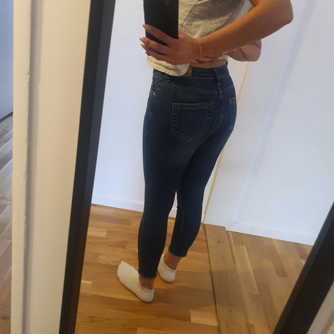 Säljer ett par snygga stretchiga blåa skinny jeans från Only. Köpta från Zalando för 399kr endast använda 1 gång!! De är mid till low waist och har en klassisk femficksdesign. Stl. XS Längd 30. Perfekt för en stilren look.
