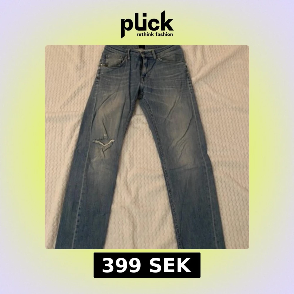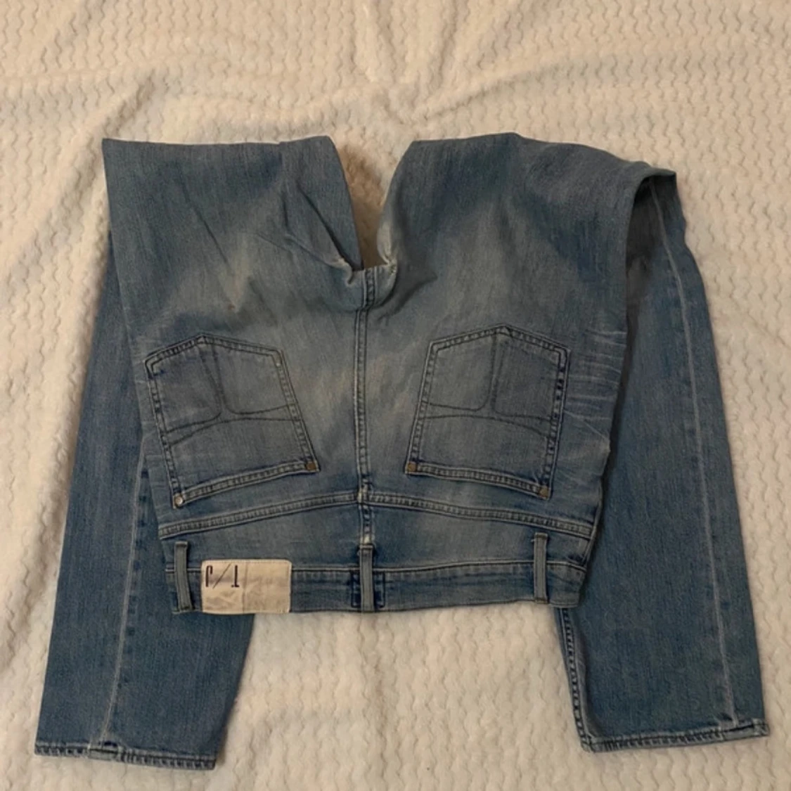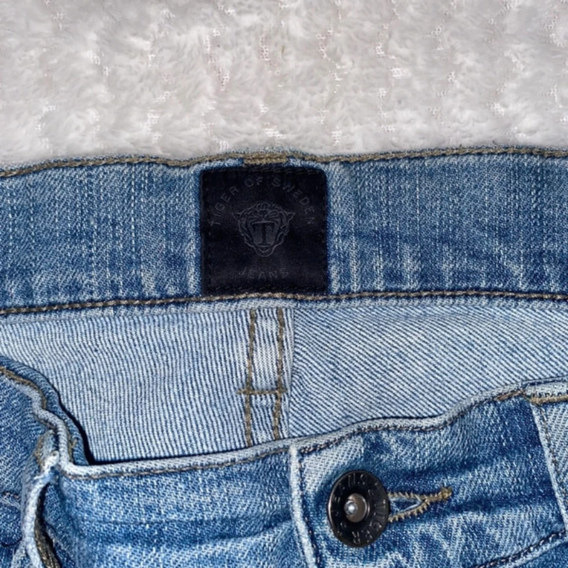 Snygga blå jeans från Tiger Of Sweden med slitna detaljer och en klassisk femficksdesign. De har en knappgylf och är i en ljus tvätt som ger en avslappnad look.
