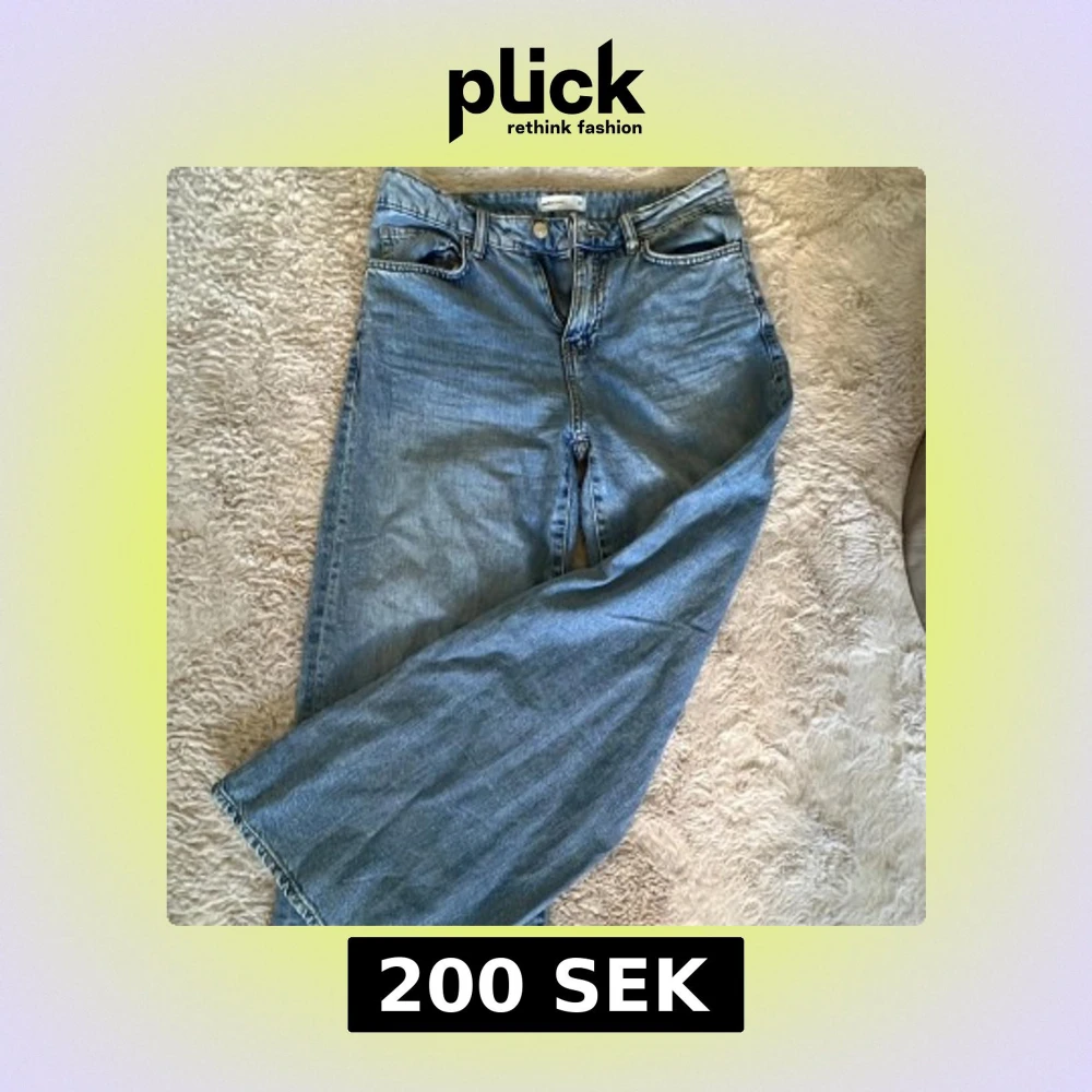 Snygga blå jeans med hög midja och breda ben från Gina! Storlek 34, inte mycket använda