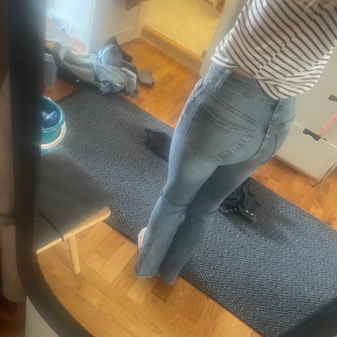 Jag säljer mina snygga zara jeans för att dem blivit för små. Dem är lite fransiga vid fötterna men det är inget man märker! Om du vill ha fler bilder är det bara att skriva. 💗