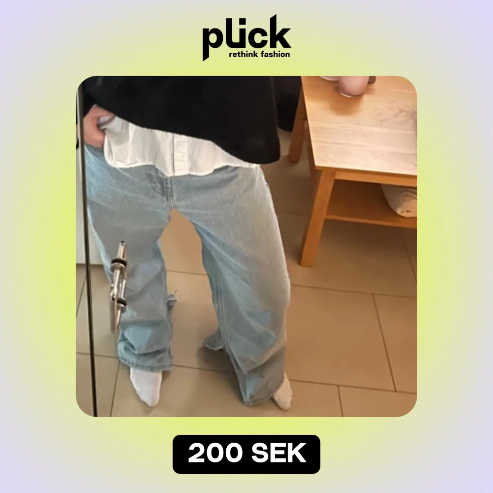 Säljer dessa fina baggy jeansen från Junkyard. Säljer de pågrund av att jag inte använder de så ofta🙃De har en slits på innersidan för att få de mer raka🤍 Skriv för bättre bilder eller andra frågor💕💕