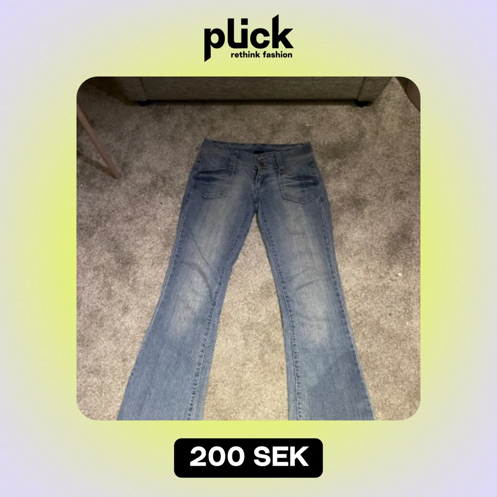 Lågmidjade blåa jeans med fickor på baksidan💕ena knappen där fram är borta men inte något som syns jättemycket och kan nog lätt lagas💓38 i midjan och 73 i innerbenslängden🩷TAR ENDAST SWISH