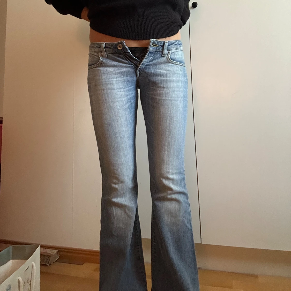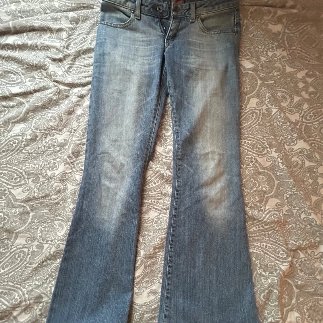 Säljer dessa assnygga jeans då dom inte passar i midjan på mig! Så snygg tvätt och sitter perfekt i längden på mig som är 160💖innerbenslängd: 73cm, midjemått: 38cm rakt över så ca 76cm. Skriv om ni vill ha fler bilder eller så så löser jag det❣️🩷