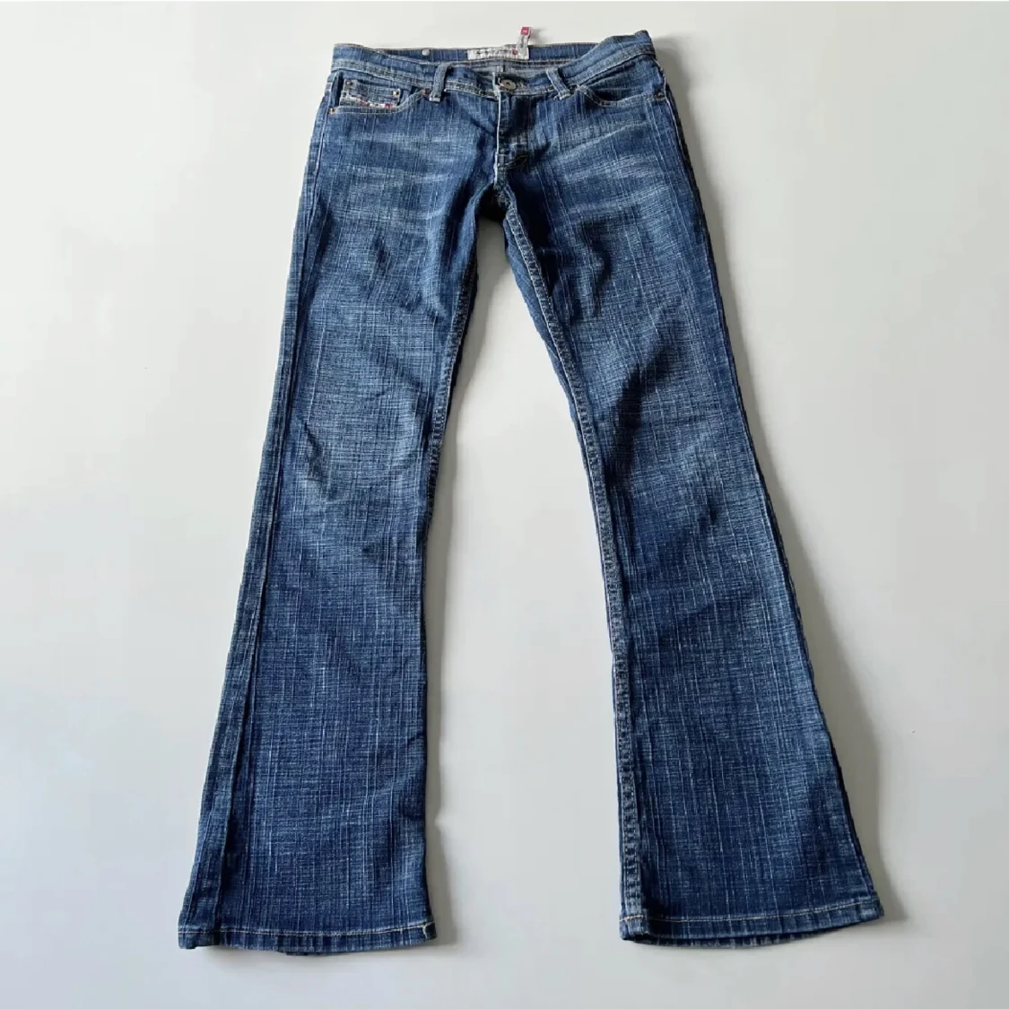 Säljer vidare dessa superfina lågmidjade jeans som tyvärr inte passade mig. Står storlek M men skulle abslout säga XS. Midjemått 74cm. Innerbenslängd 74 cm.