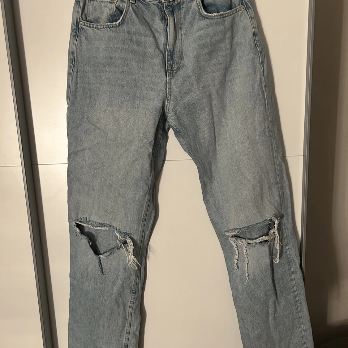 Blåa jeans med hål på knäna från Gina tricot, fint skick!!
