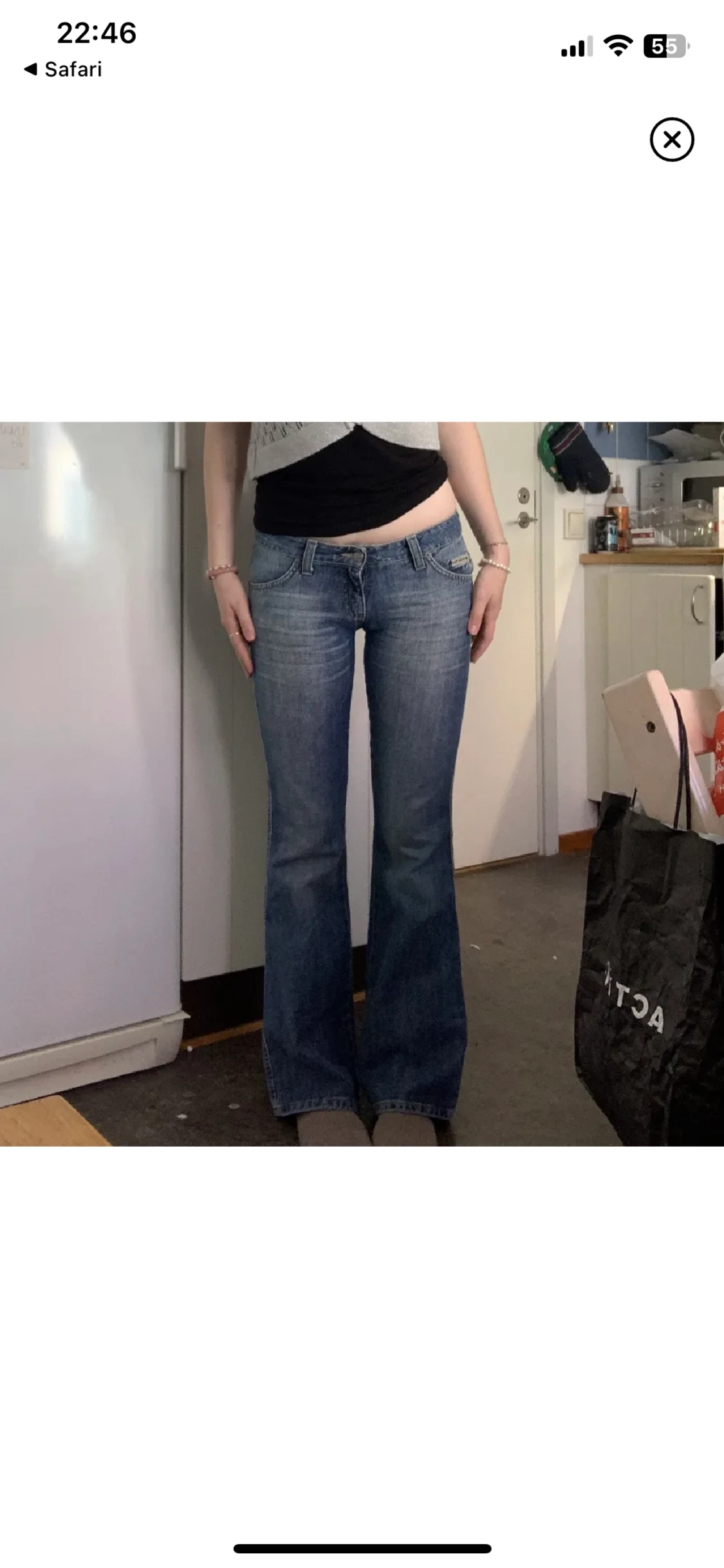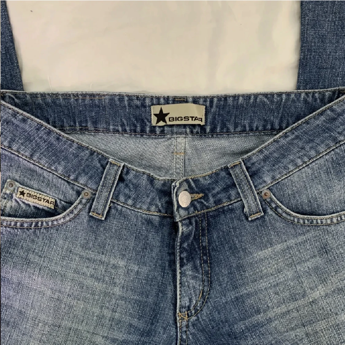 Jättesnygga lågmidjade jeans från big star som jag säljer för att de är för stora för mig. De är i fint skick. Midjemått: 38cm rakt över, innerbenslängd: ca 80cm. Hon på bilden är ca 165cm lång. (Lånade bilder) kan tas egna