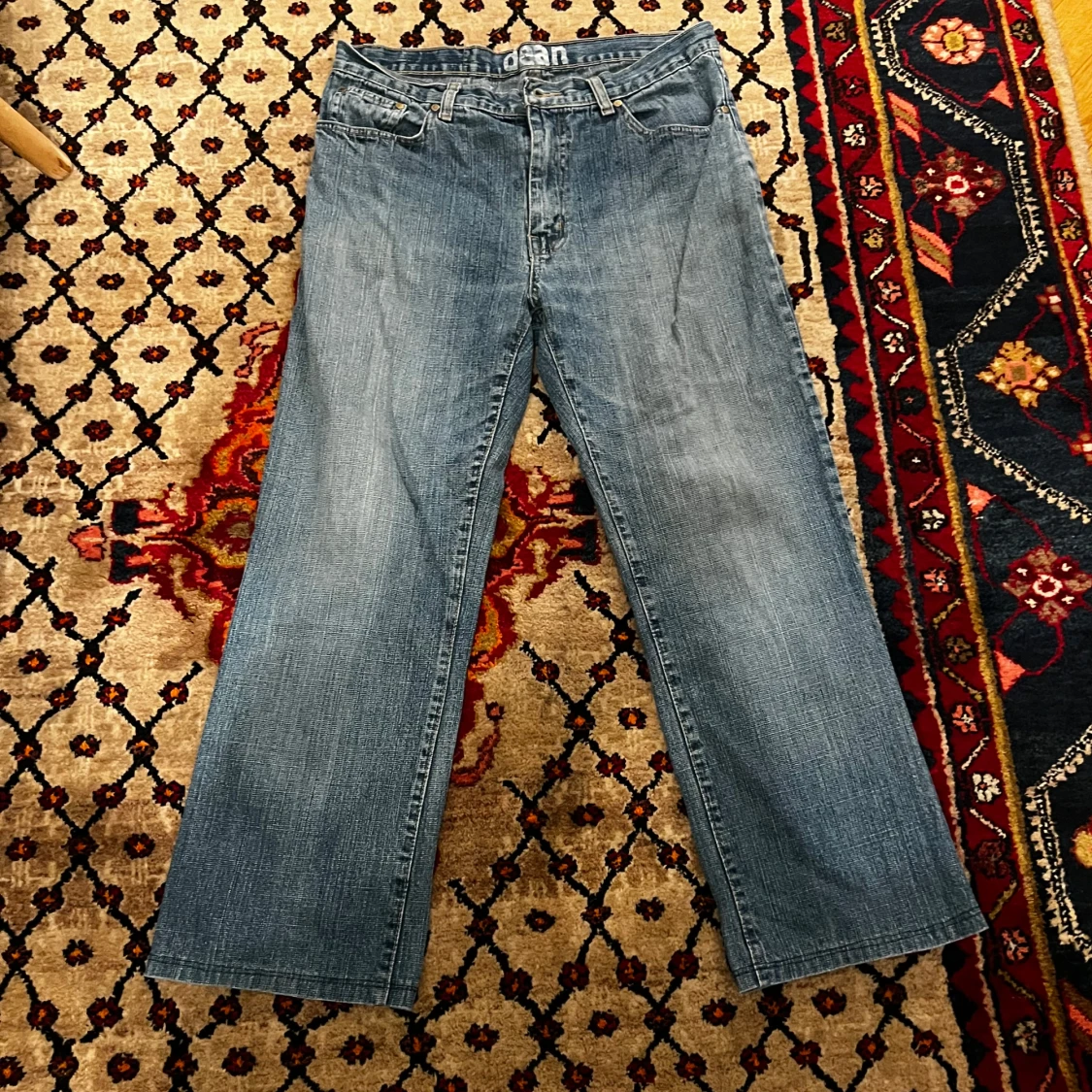 Säljer ett par klassiska blå jeansbyxor i bra skick. De har en straight passform och är högmidjade, vilket ger en snygg och bekväm stil. Perfekta för både vardag och fest! 🕺
