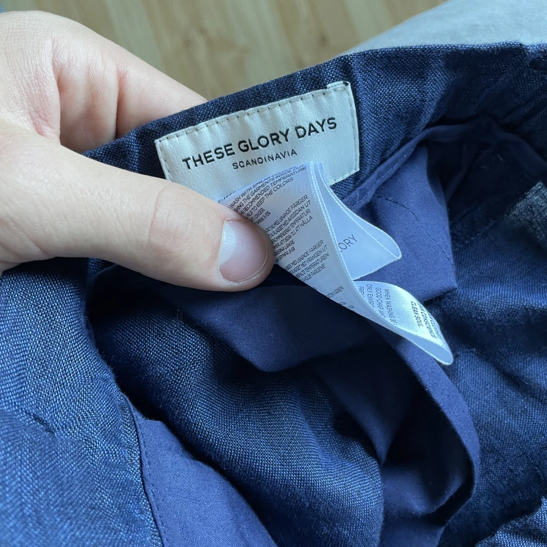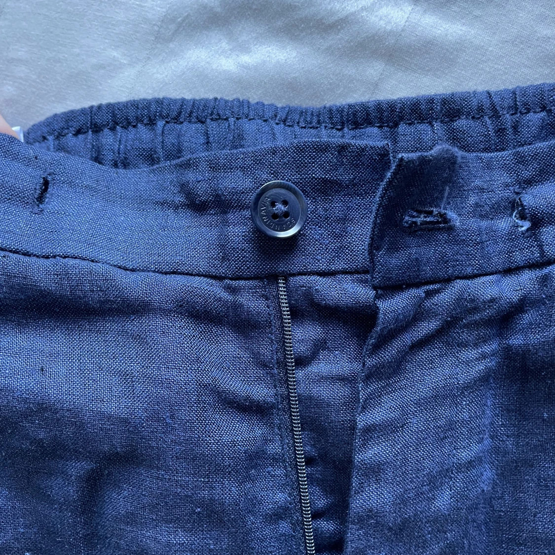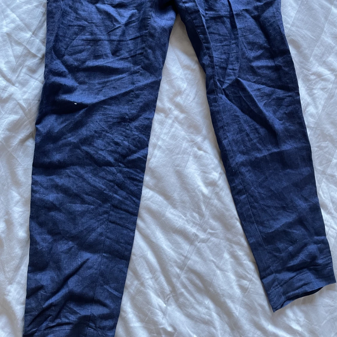 Blåa linnebyxor i bra skick utom att snöret till de försvunnit. (Syns på bilden). Storlek 46/ 31W och 32L. Kontakta för mer bilder.