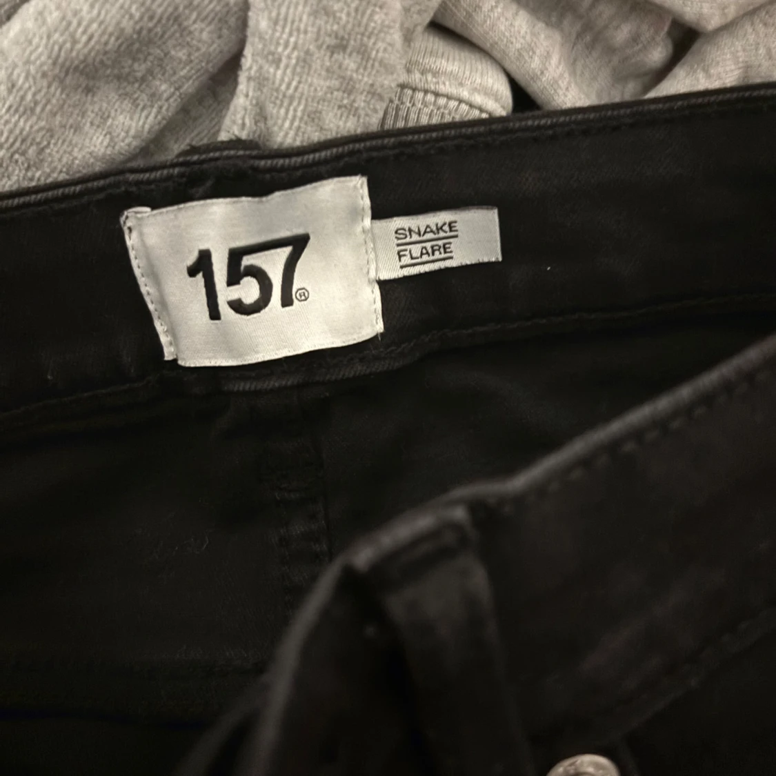 Säljer ett par svarta jeans från 157 i modellen Snake Flare. Byxorna har en bootcut design och klassisk femficksdesign. Snygg passform med midja som sitter perfekt och stretchigt material för extra komfort. Perfekta för dig som gillar trendiga flare-jeans. Strlk S men passar även mig som har strlk Xs. Inga defekter alls! 💕