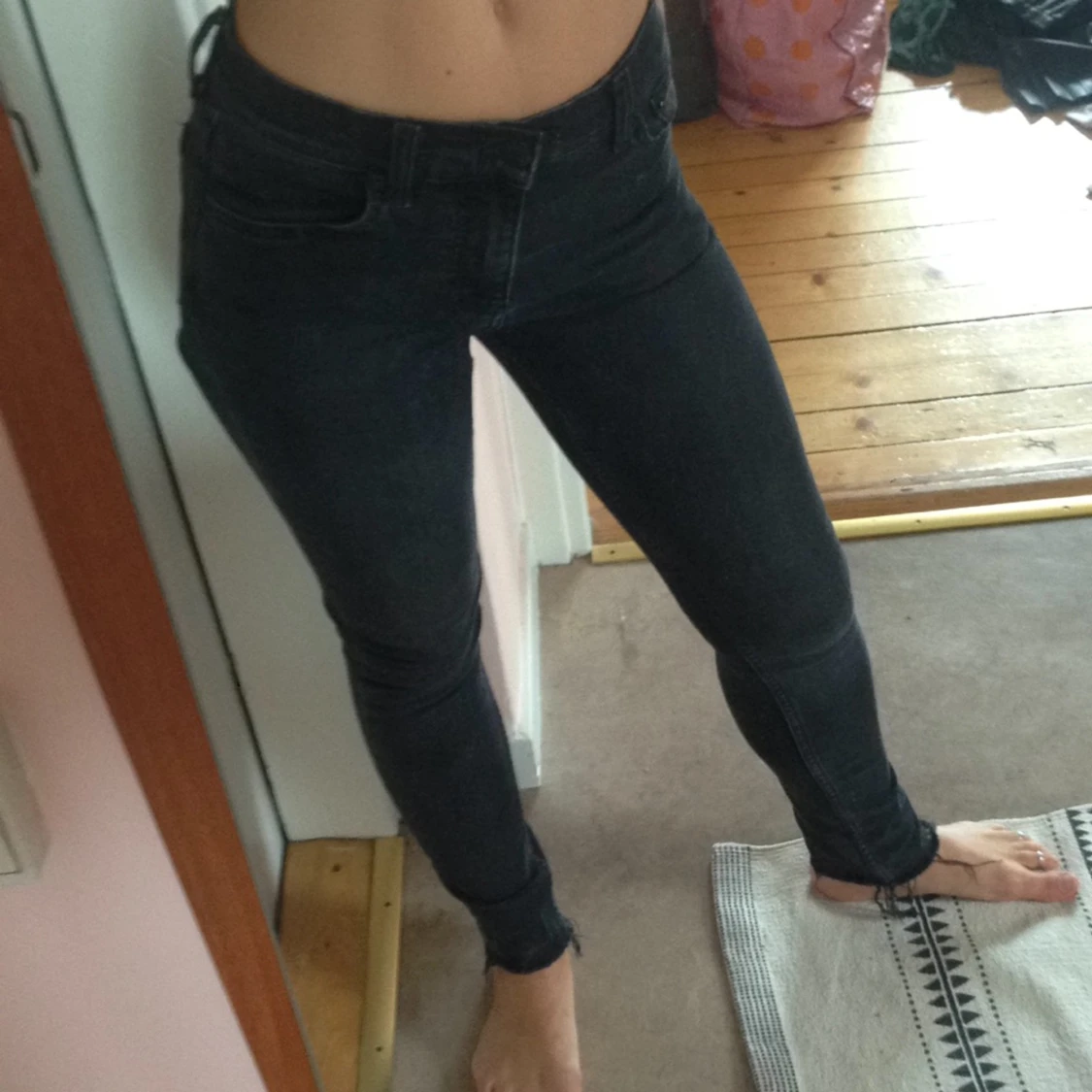Svarta jeans med lite sliten tvätt. W28 L32. (Avklippa pga korta ben) kanske är L30 nu. Från weekday i stretch!