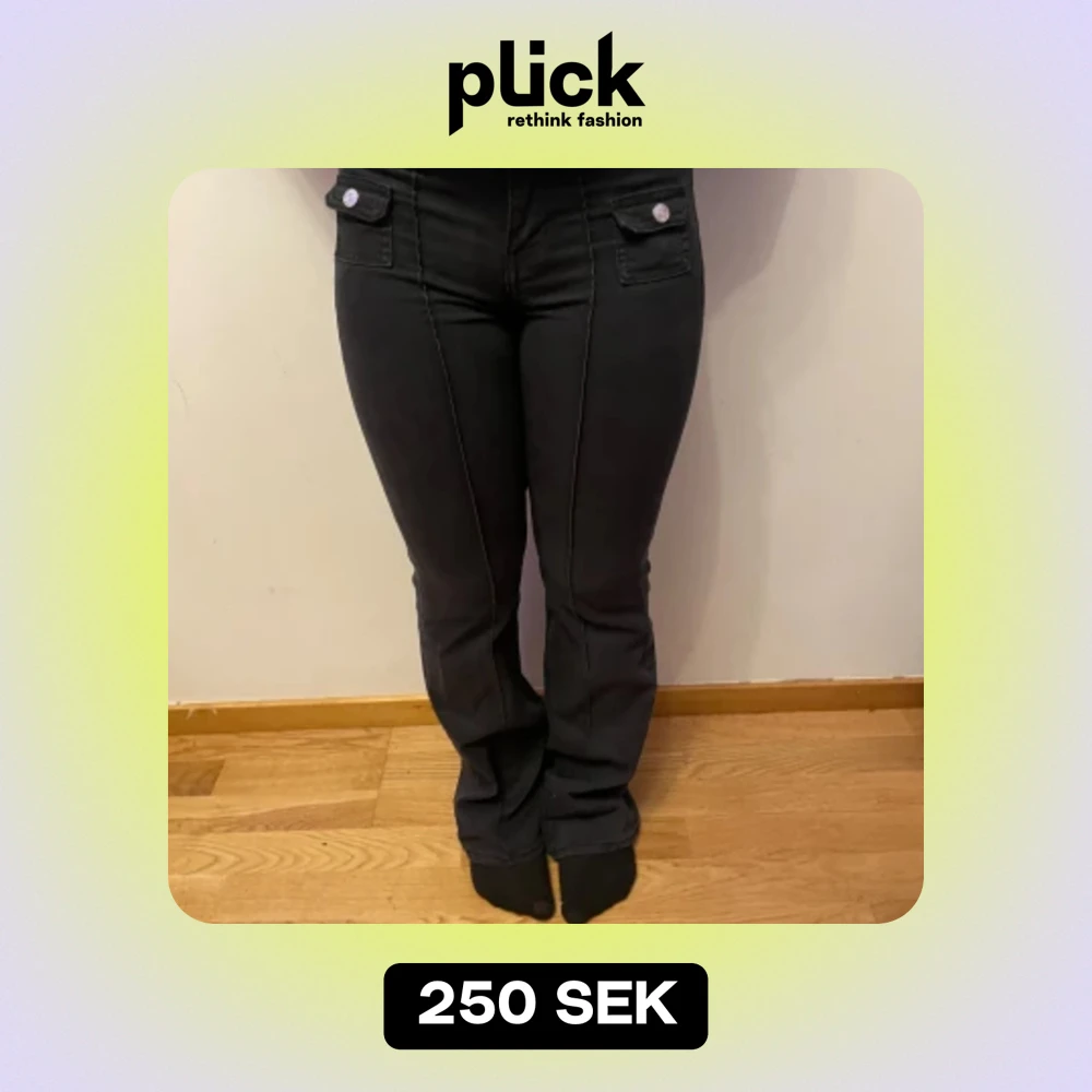 Säljer dessa par snygga svarta jeansen från H&M. De är lågmidija och har bootcut (: Änvänder Aldrig den pga den är tyvärr liten för mig
