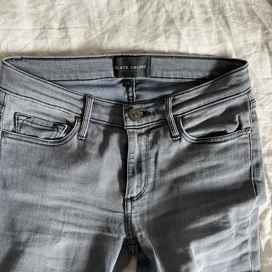 Snygga grå jeans från Black Orchid i en slim passform. Jeansen är mid waist