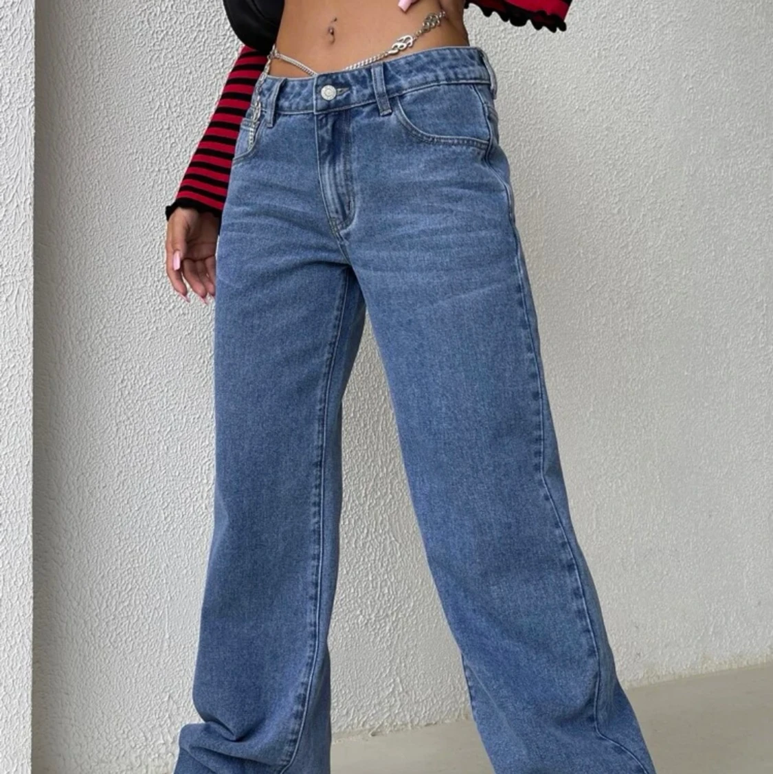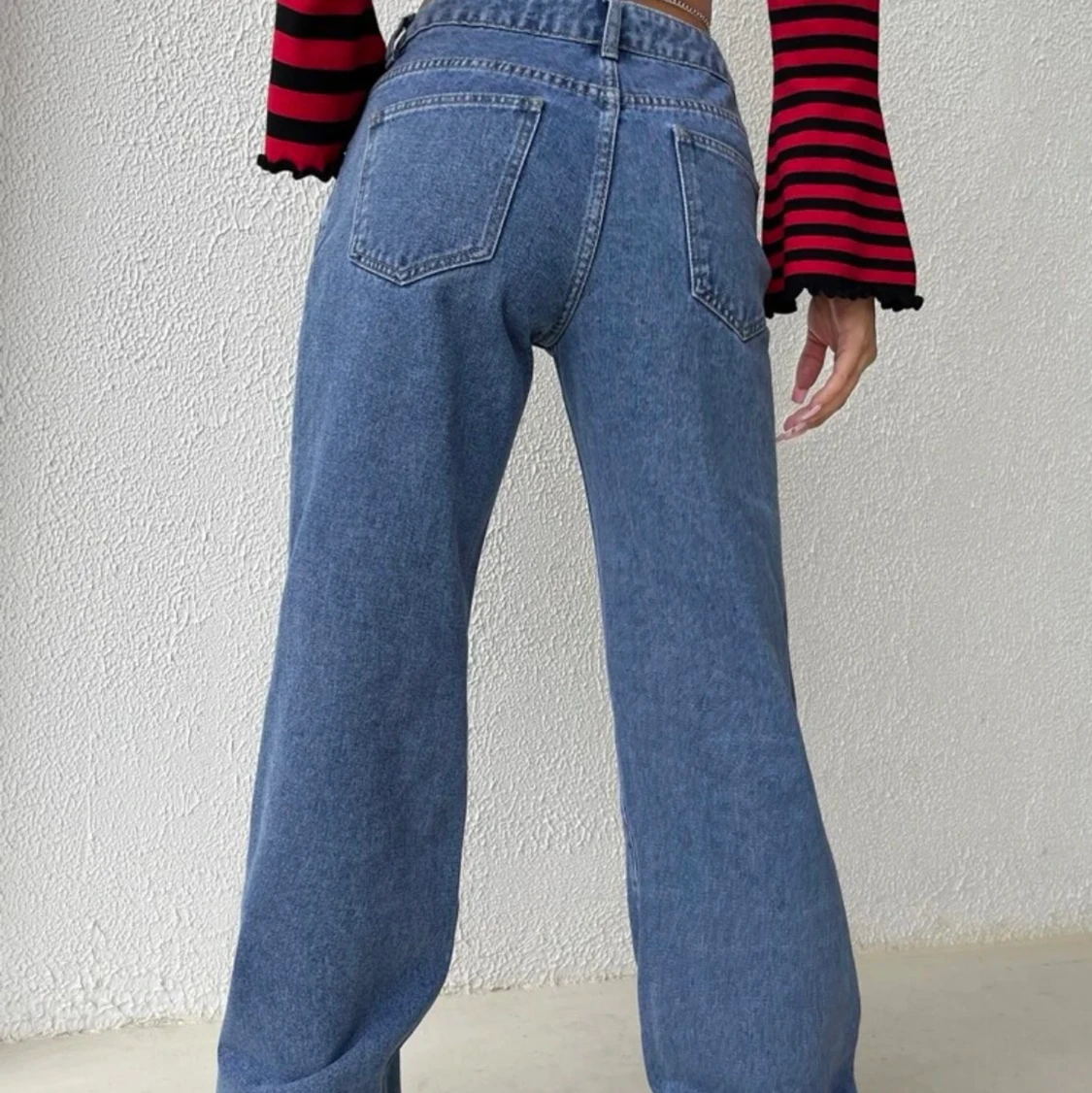 Blåa lågmidjade jeans i storlek xs 💗 Säkjer pga för långa i benen. De är helt oanvända och köptes för 219kr, priset kan diskuteras såklart 🫶 köparen står för frakt! Men jag kan även mötas upp.